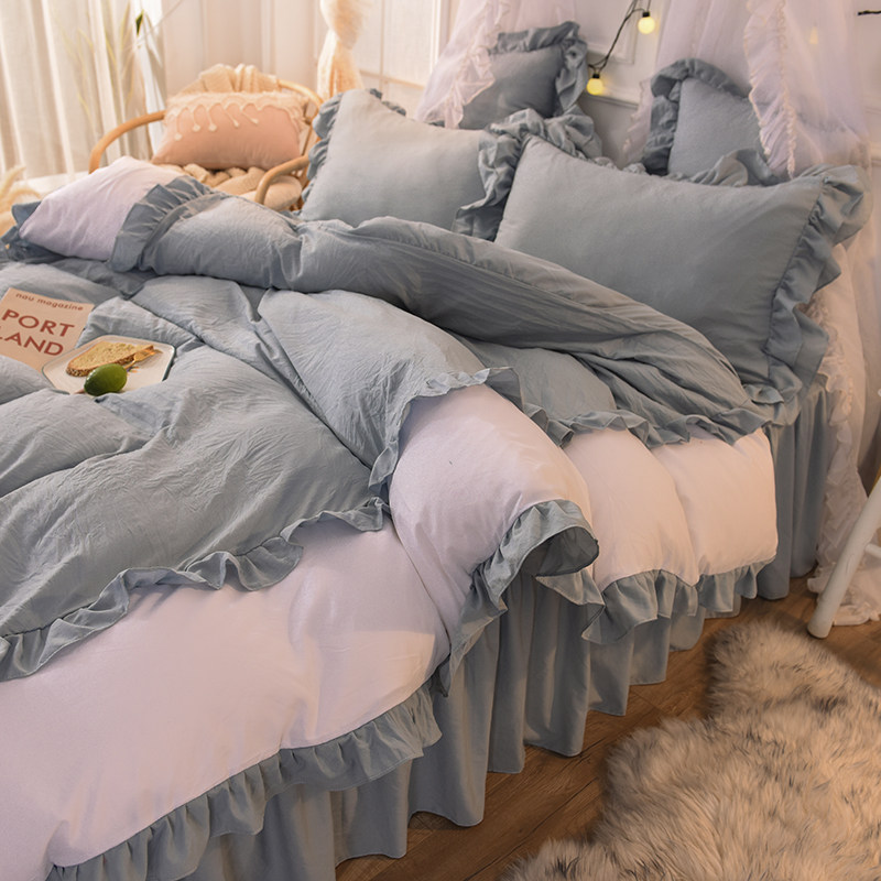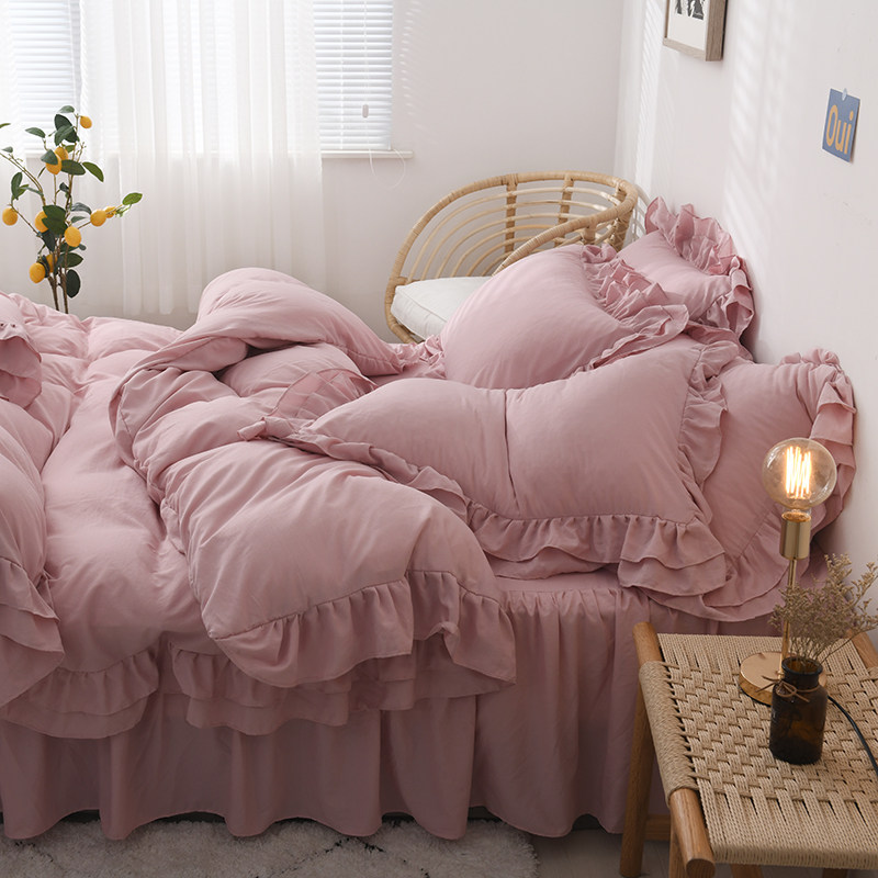 ins少女心水洗棉纯棉床裙四件套公主风床单被套三件套1.5/1.8米床