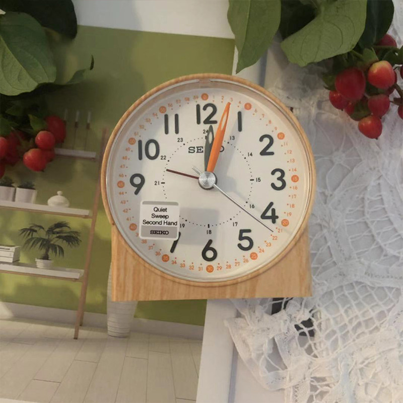 正品日本SEIKO精工可爱静音学生儿童闹钟夜光仿木树脂教学钟表168