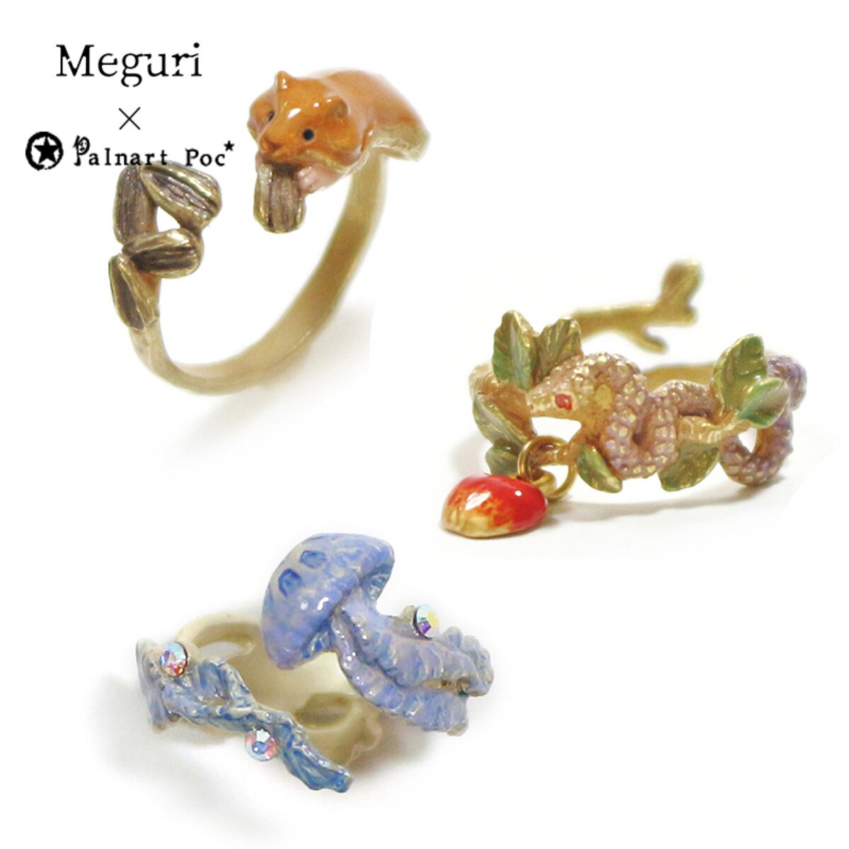 Palnart poc设计师款可调节大小动物立体个性女水母蛇型仓鼠戒指