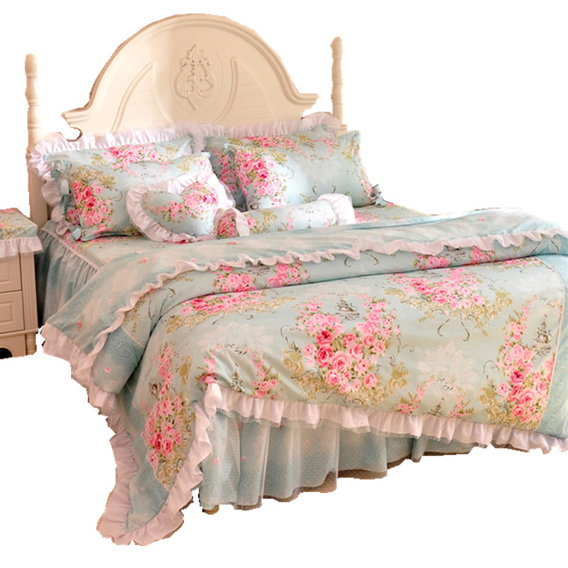 淘宝4612883543624936115,纯棉韩版公主风夏四件套蕾丝花边被套床单床裙婚庆粉韩式全棉床品
