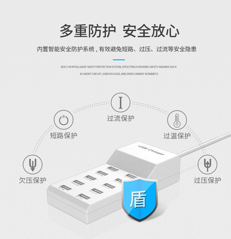 10口usb充电器多口排插插座式