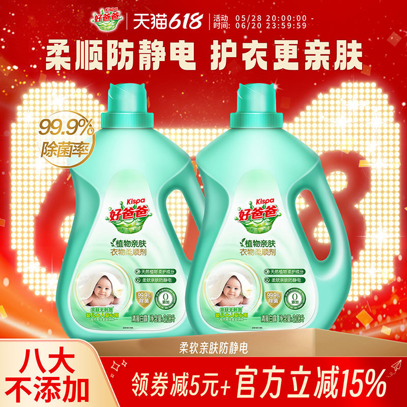 天猫好爸爸旗舰店,好爸爸柔顺剂植物亲肤柔顺护理液防静电衣物留香持久洗衣2.08L*2,亲肤柔顺持久留香