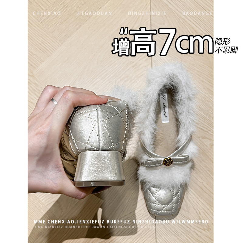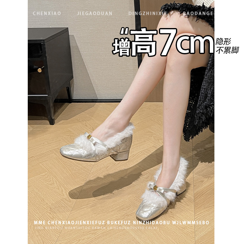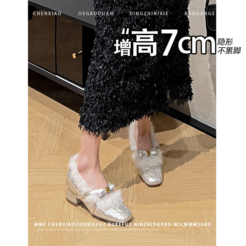 淘宝陈小姐高跟女鞋,隐形内增高7CM!小个子蝴蝶结玛丽珍单鞋2026春加绒浅口高跟鞋女