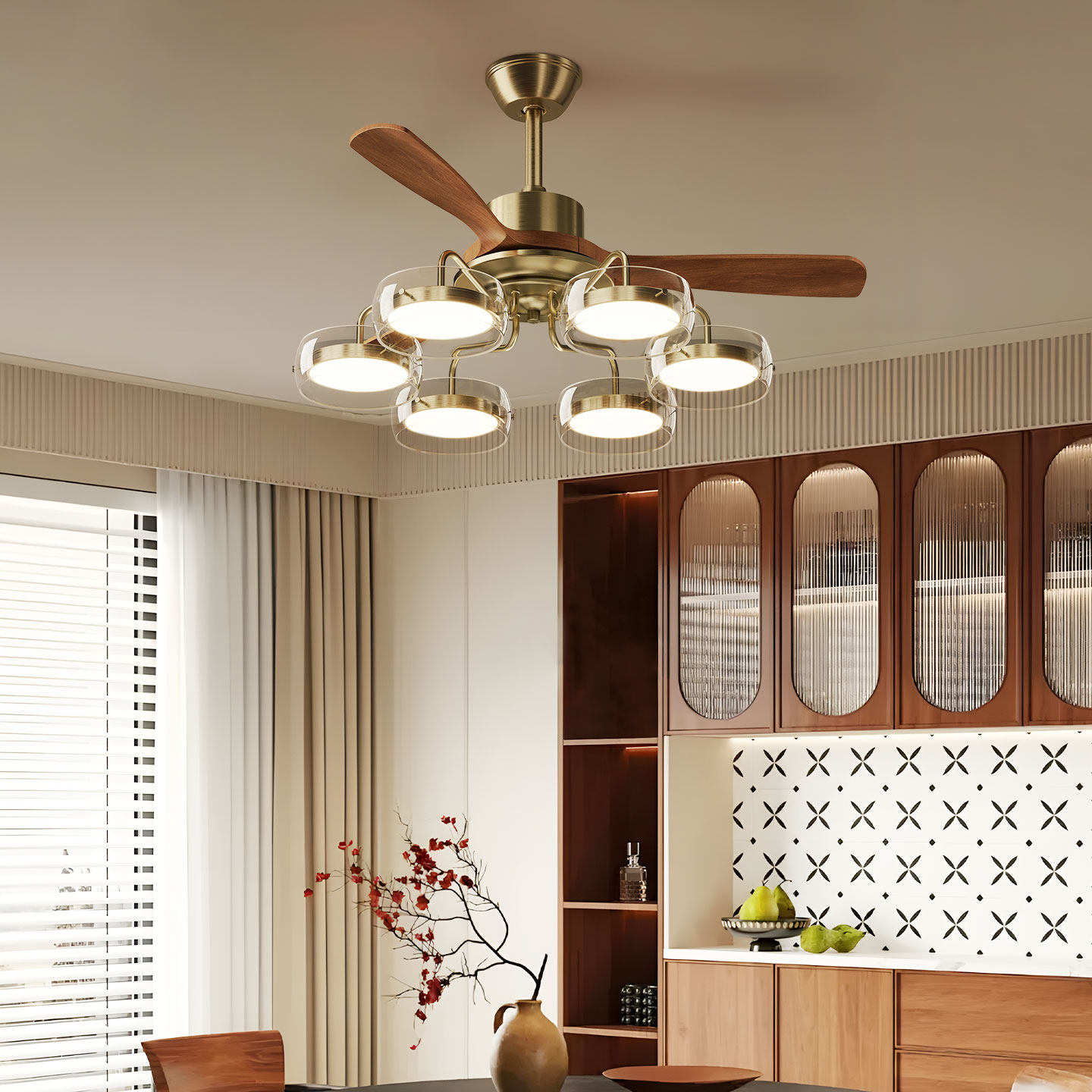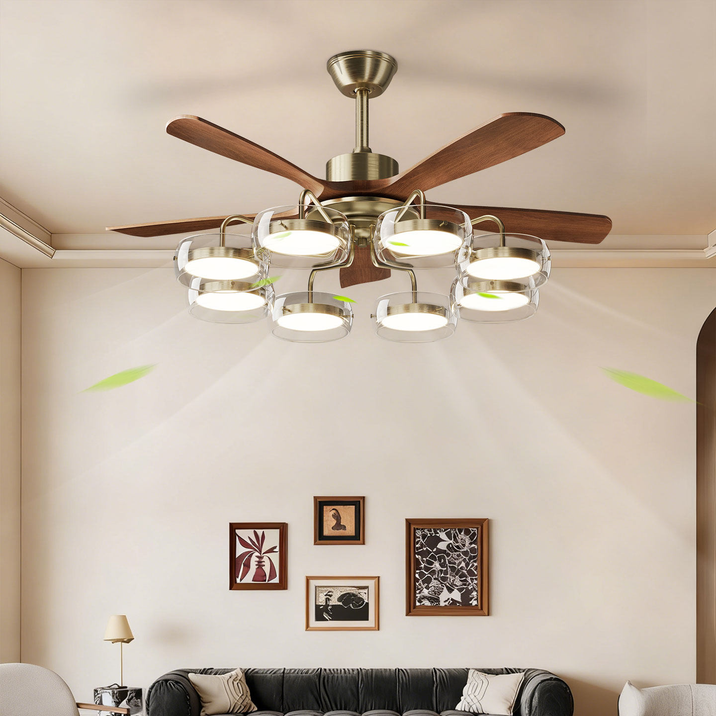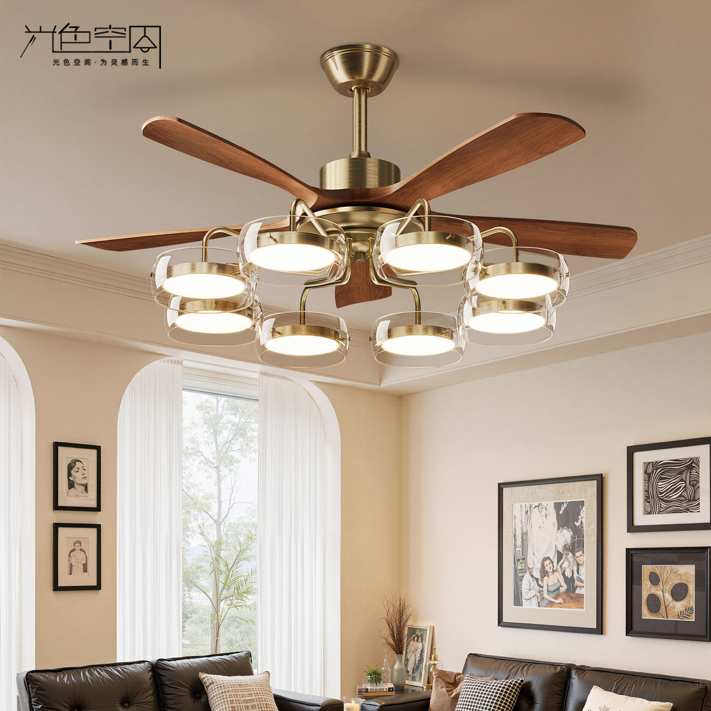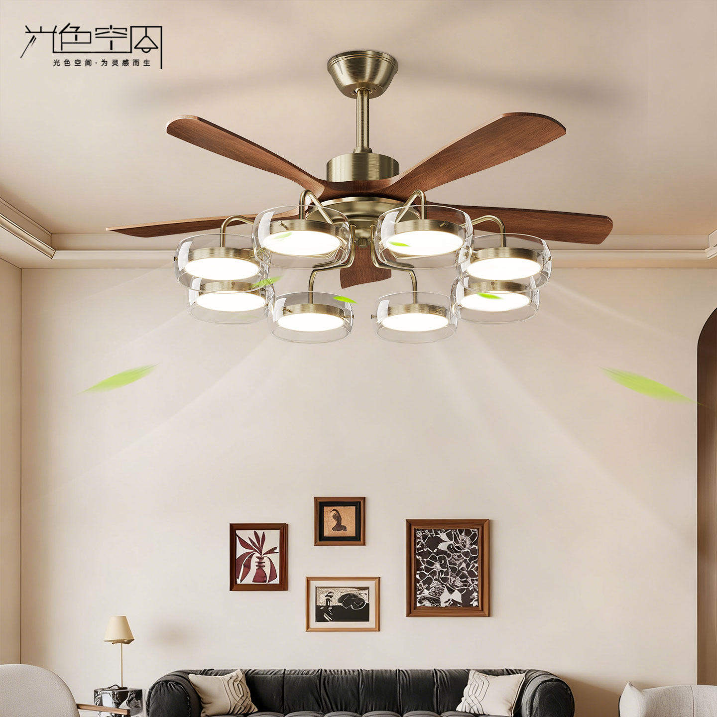 淘宝光色空间照明,2026新款复古客厅实木风扇灯
