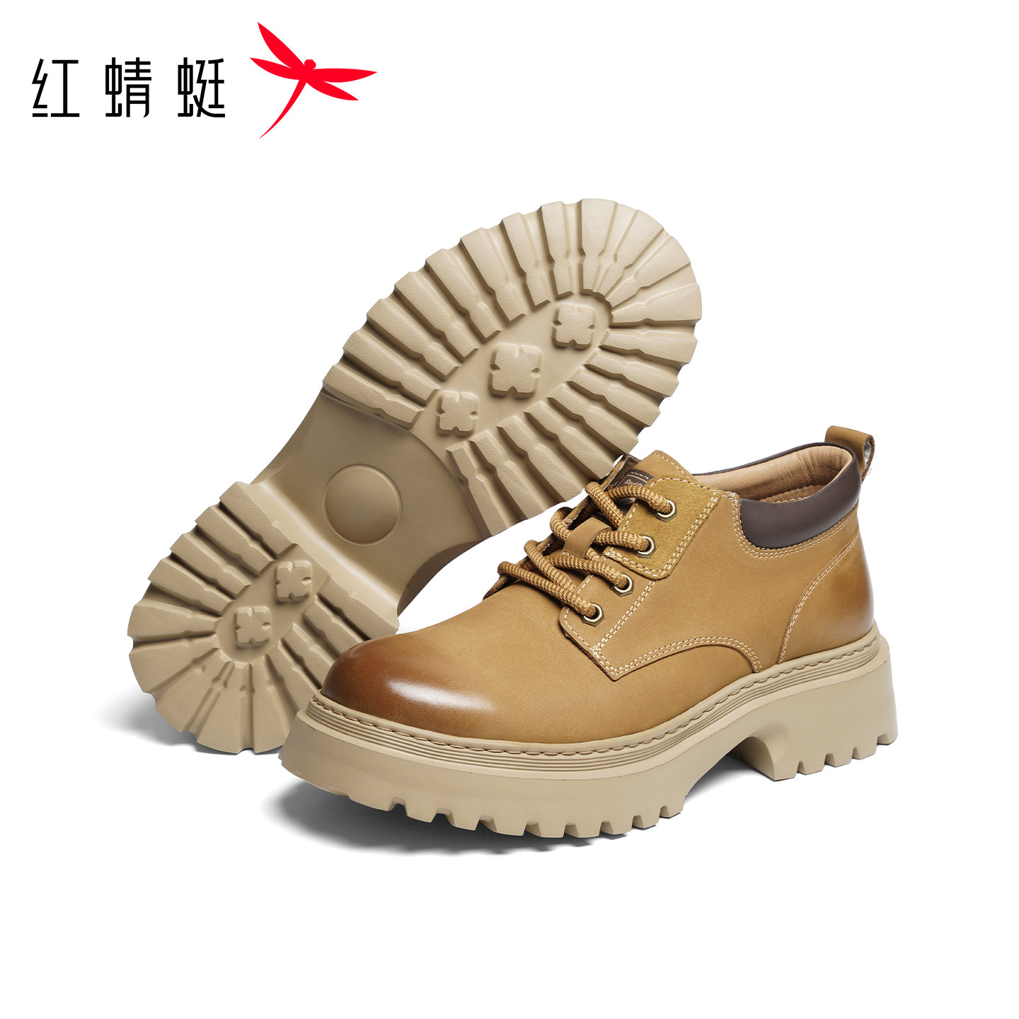天猫红蜻蜓男鞋官方旗舰店,红蜻蜓工装鞋秋冬新款男鞋厚底粗跟休闲皮鞋英伦复古时尚马丁靴男