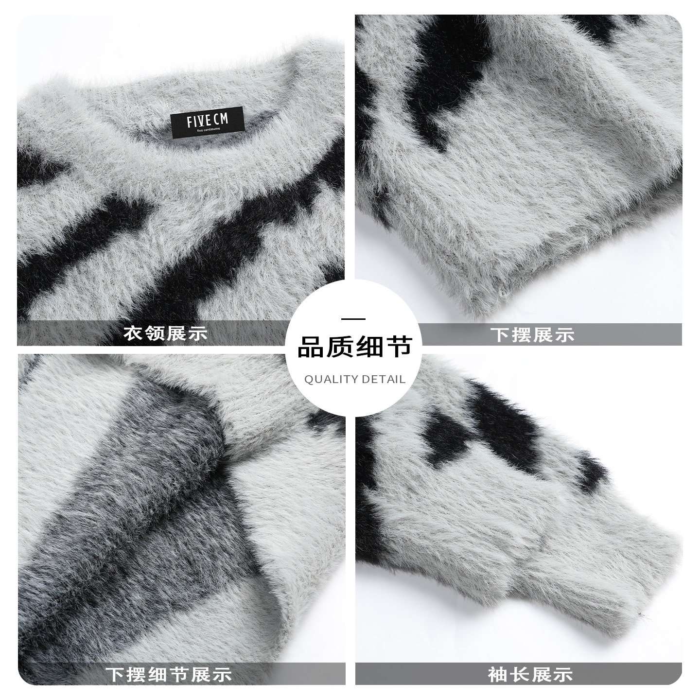 天猫FIVE CM官方旗舰店,IT'S5cm水貂毛斑马纹长袖毛衣