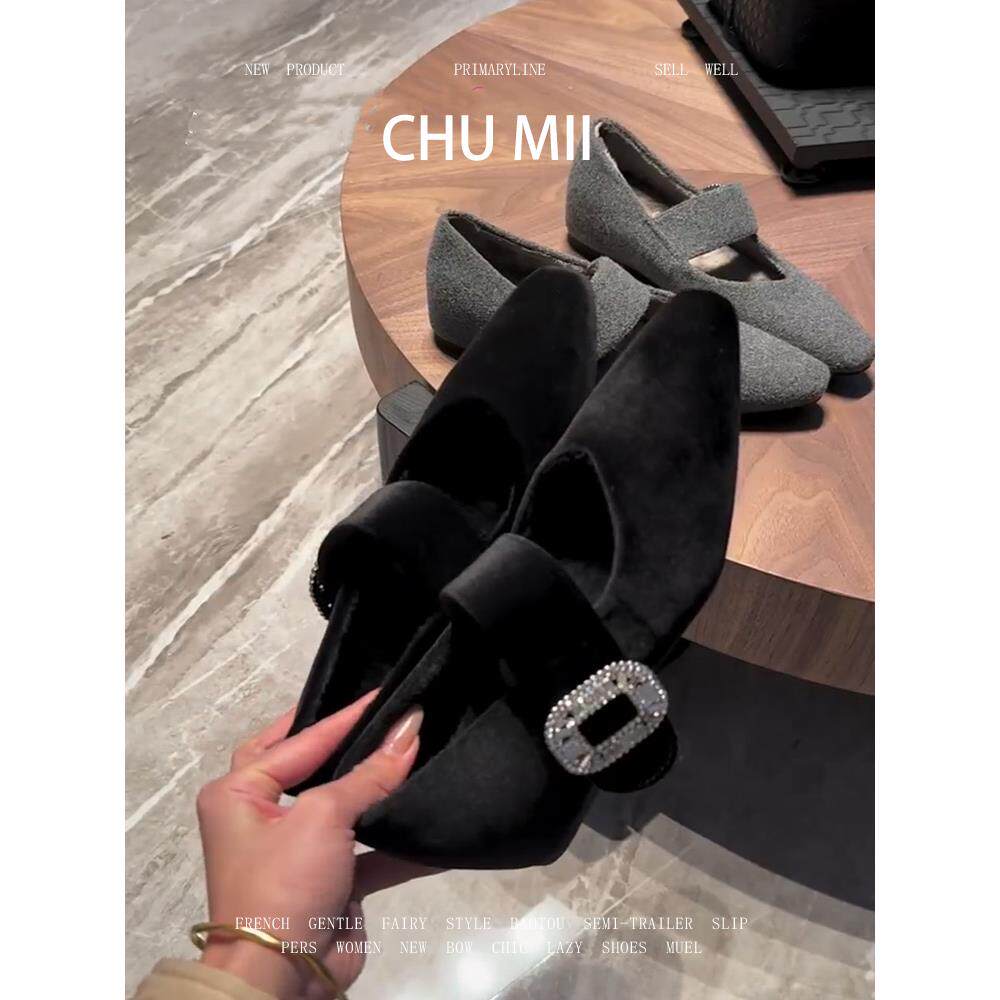 淘宝一家卖鞋的铺子,羊皮版~法式方扣水钻单鞋女气质丝绒玛丽珍鞋内增高小方头高跟鞋