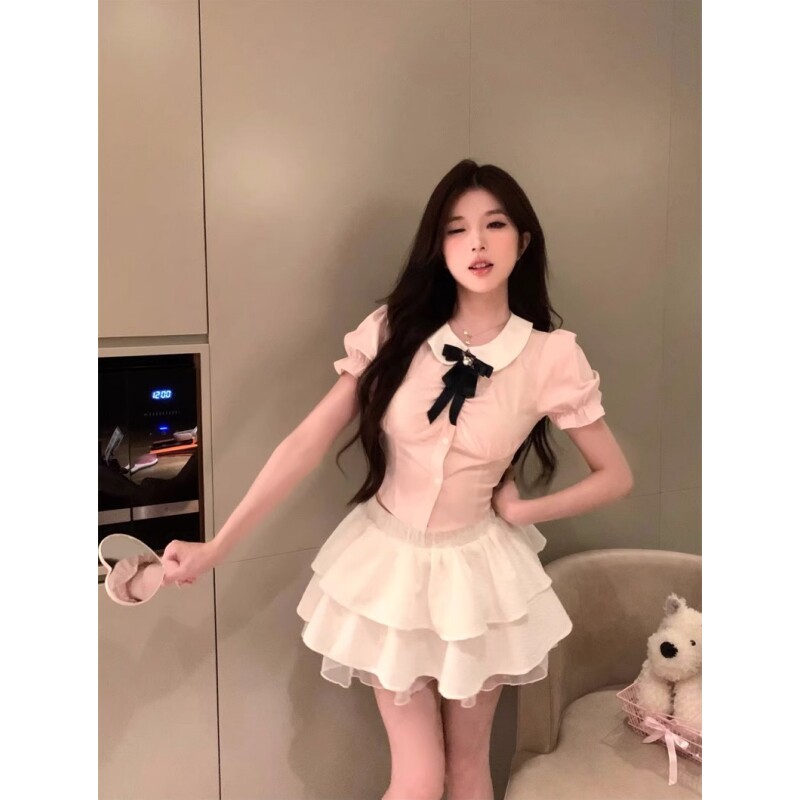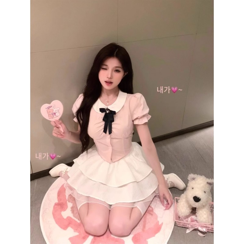 淘宝依见遇见,学院风甜美JK制服套装粉色短袖衬衫蓬蓬裙迪士尼穿搭两件套女夏季