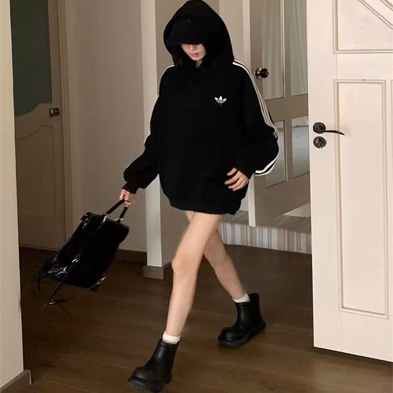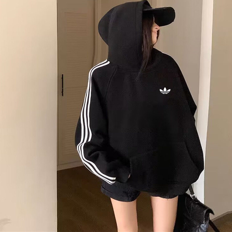 淘宝奥莱折扣向上体育top,品牌折扣丨秋冬运动卫衣男女连帽宽松套头外套三条杠情侣打底衫