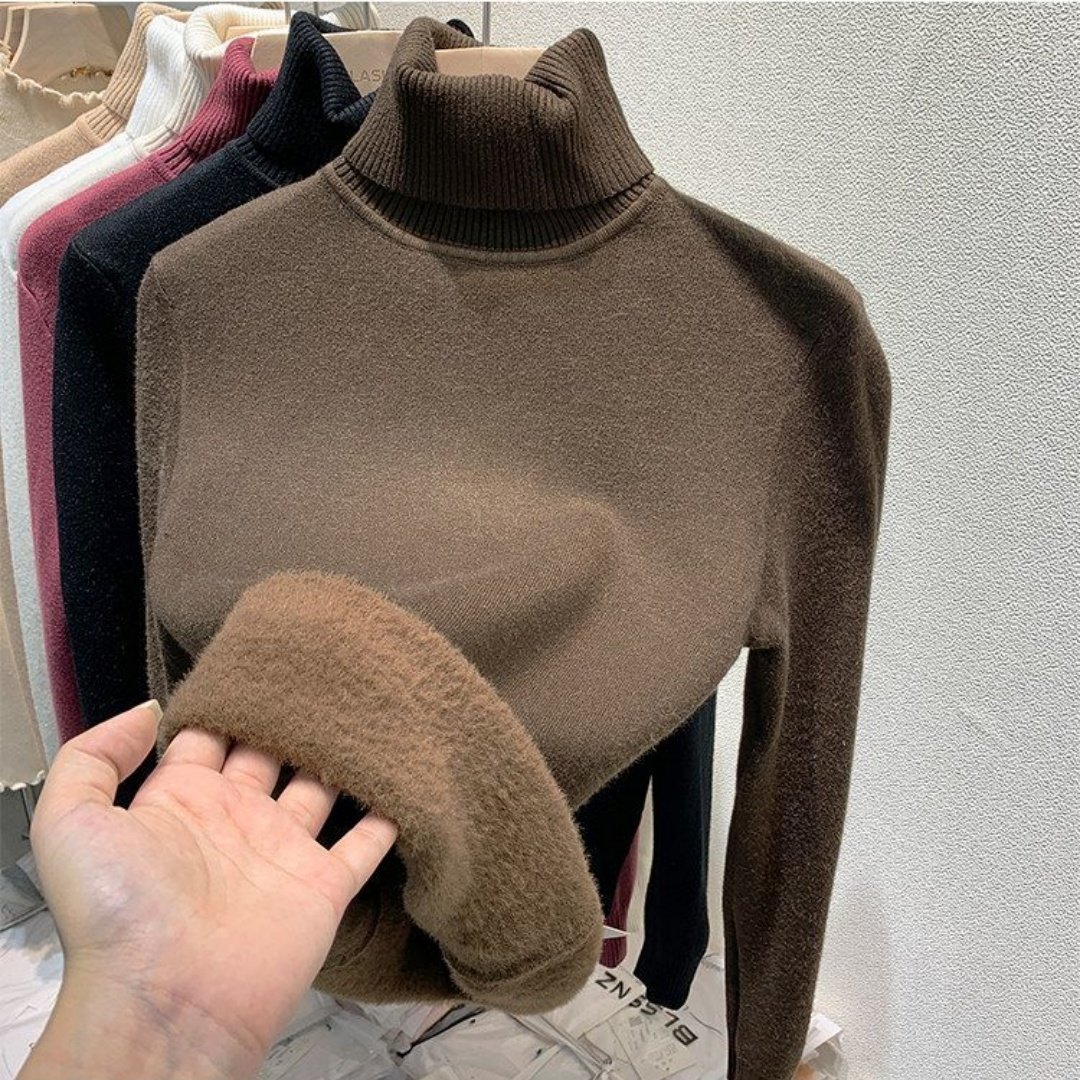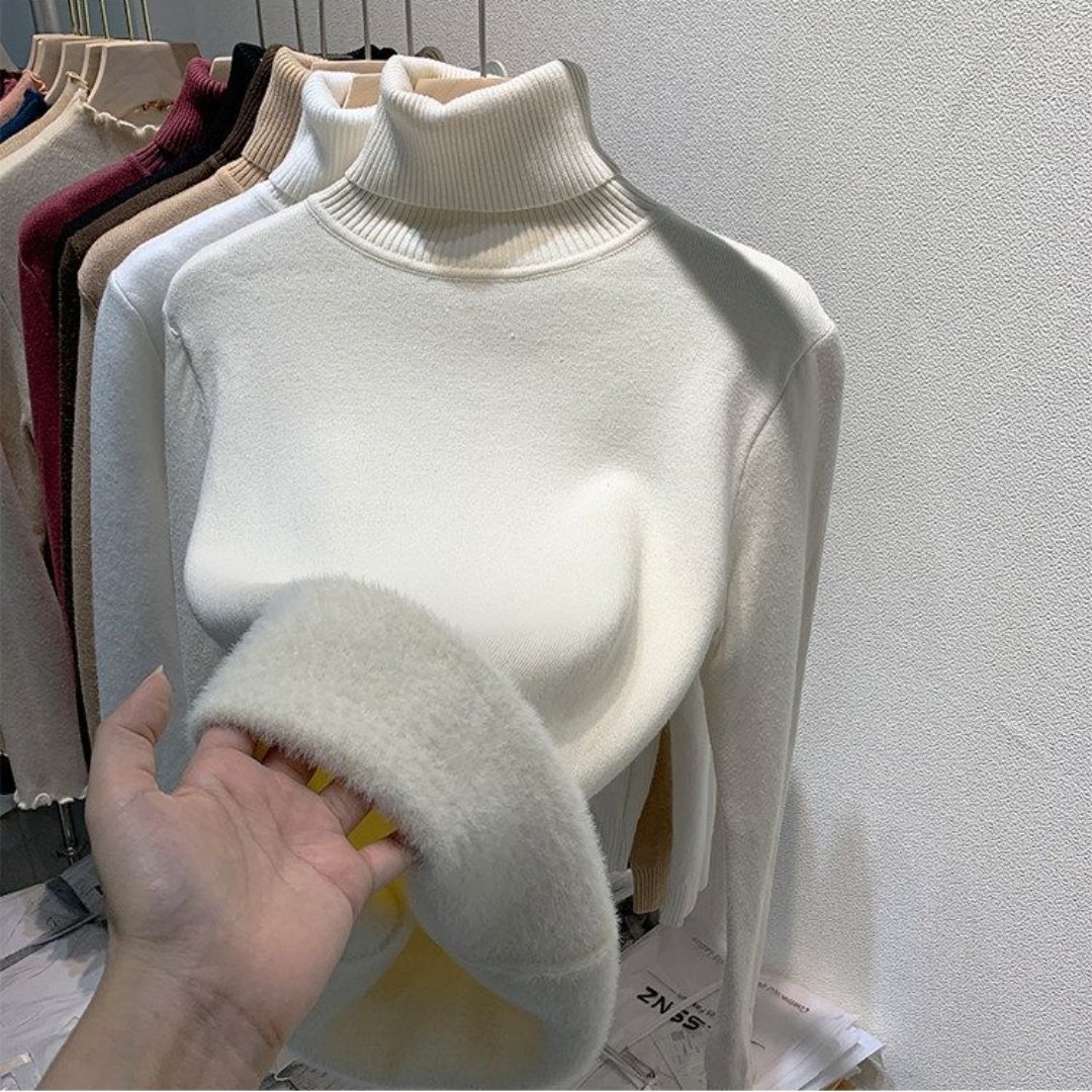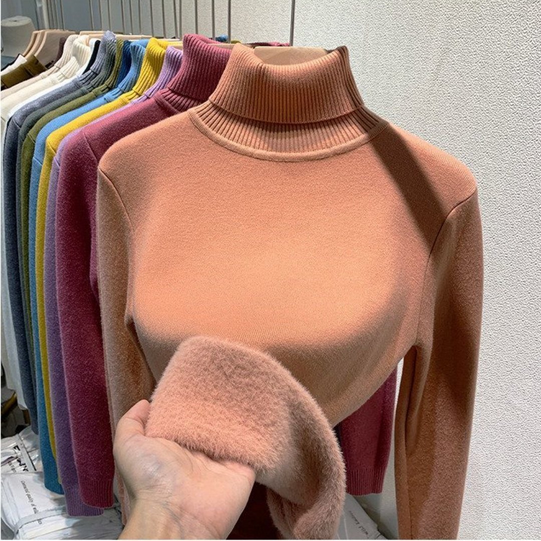 天猫1688官方工厂,高领毛衣女加绒加厚2025秋冬新款仿貂绒大码内搭上衣打底衫女冬厚