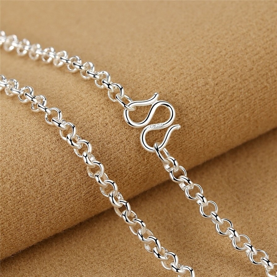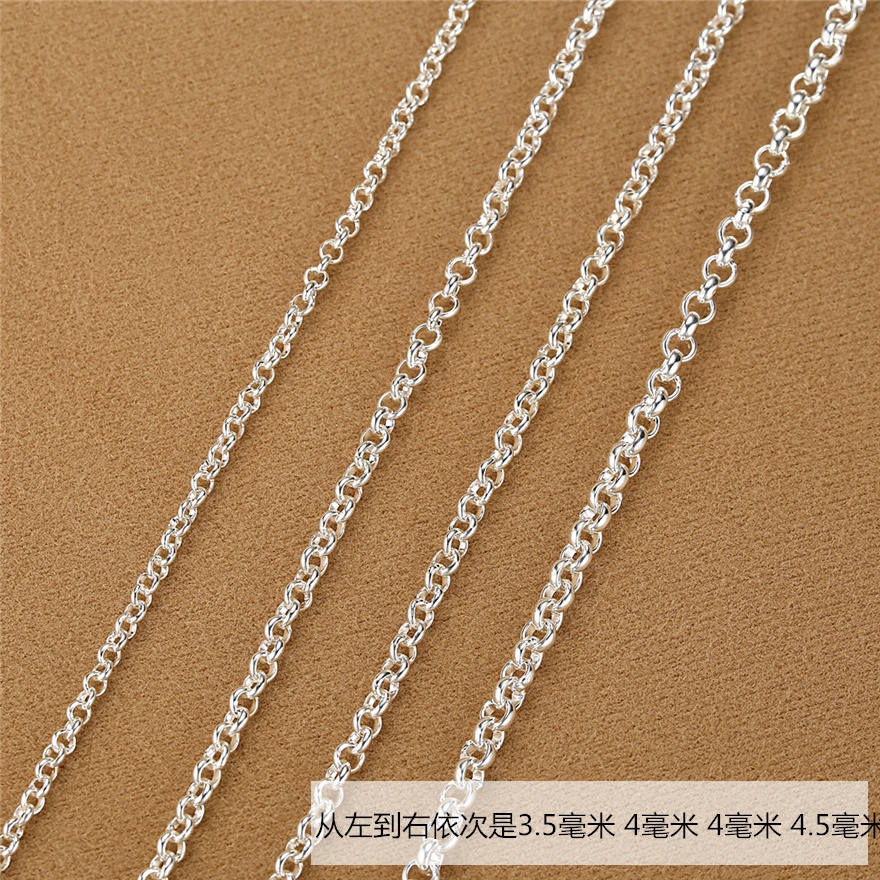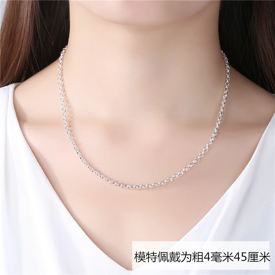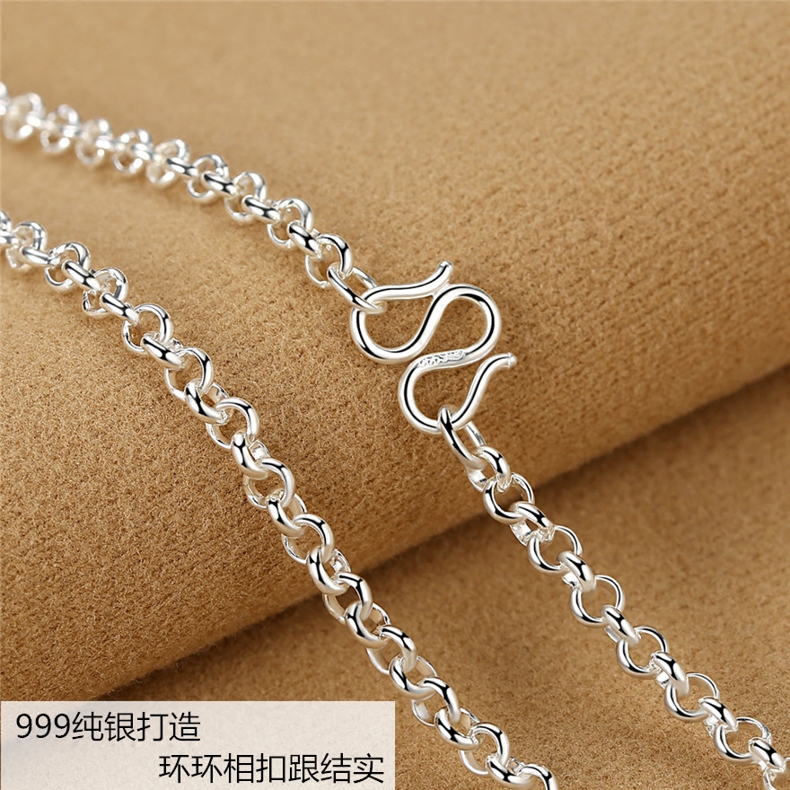 正品999纯银项链女长款毛衣链O形配链高档足银圆圈圈情侣链子银饰