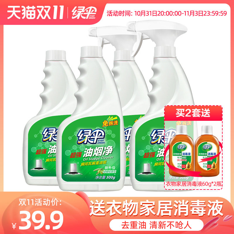 天猫绿伞旗舰店,绿伞油烟净抽油烟机清洗剂4瓶去油污厨房重油灶台强力清洁油污净,油烟机清洁 油污液化免拆洗 500g*4瓶