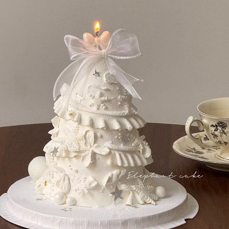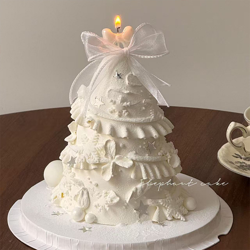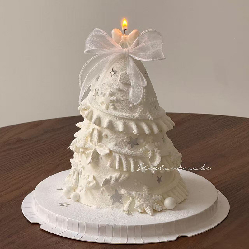 淘宝遇见你烘焙,2025圣诞节珠光白蝴蝶结蜡烛许愿树蛋糕装饰插件银色星星烘焙装扮
