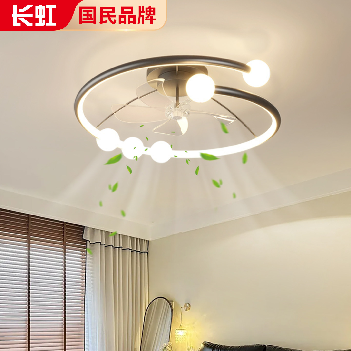 长虹风扇灯卧室灯现代简约主卧房间餐厅吸顶灯极简电扇灯儿童房灯