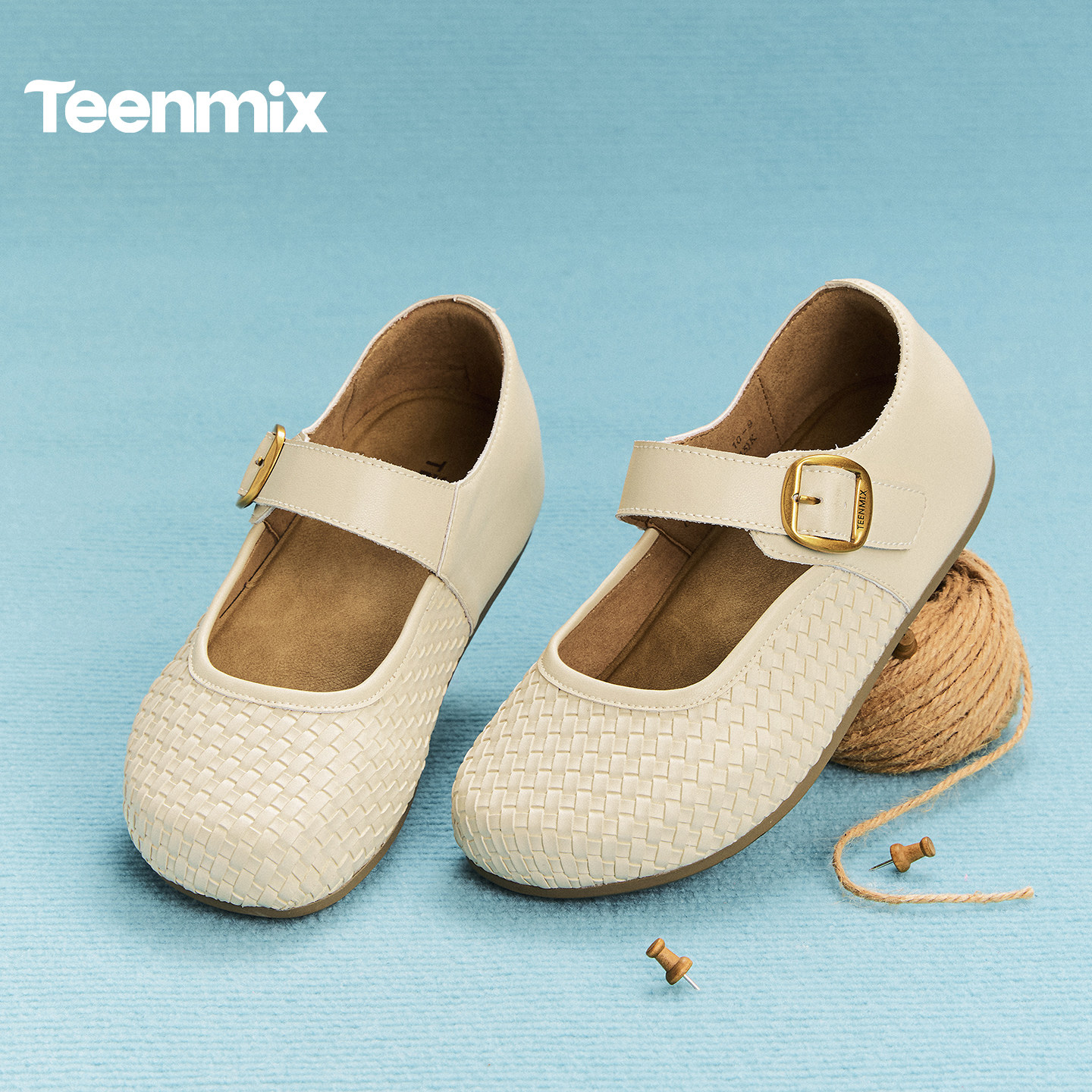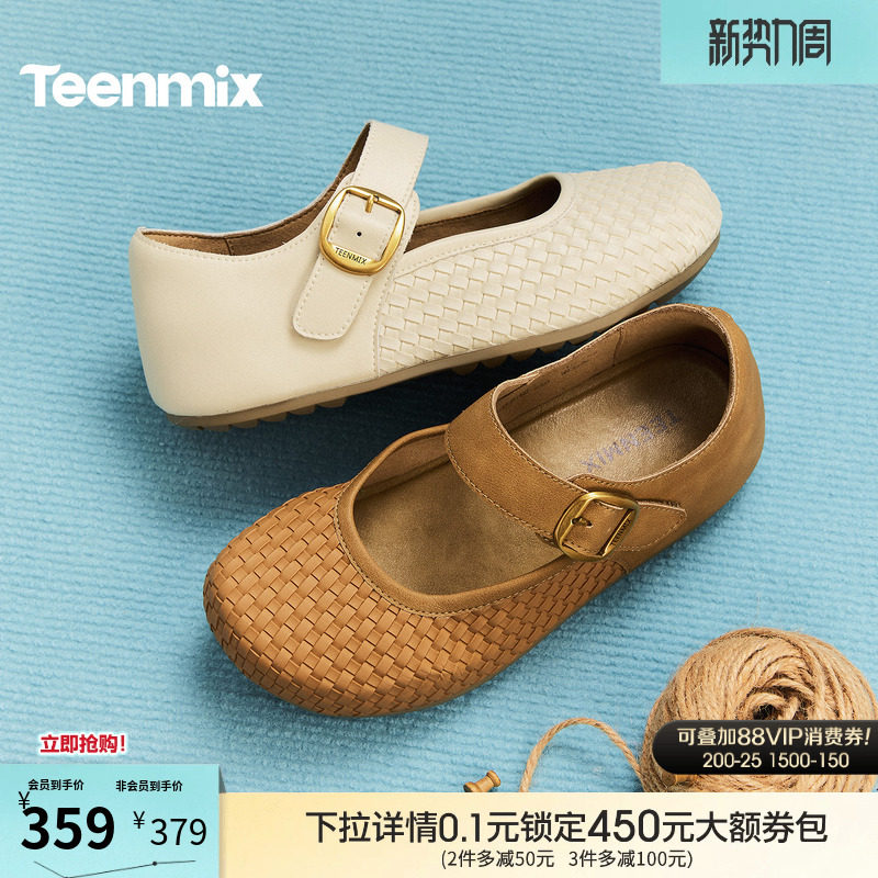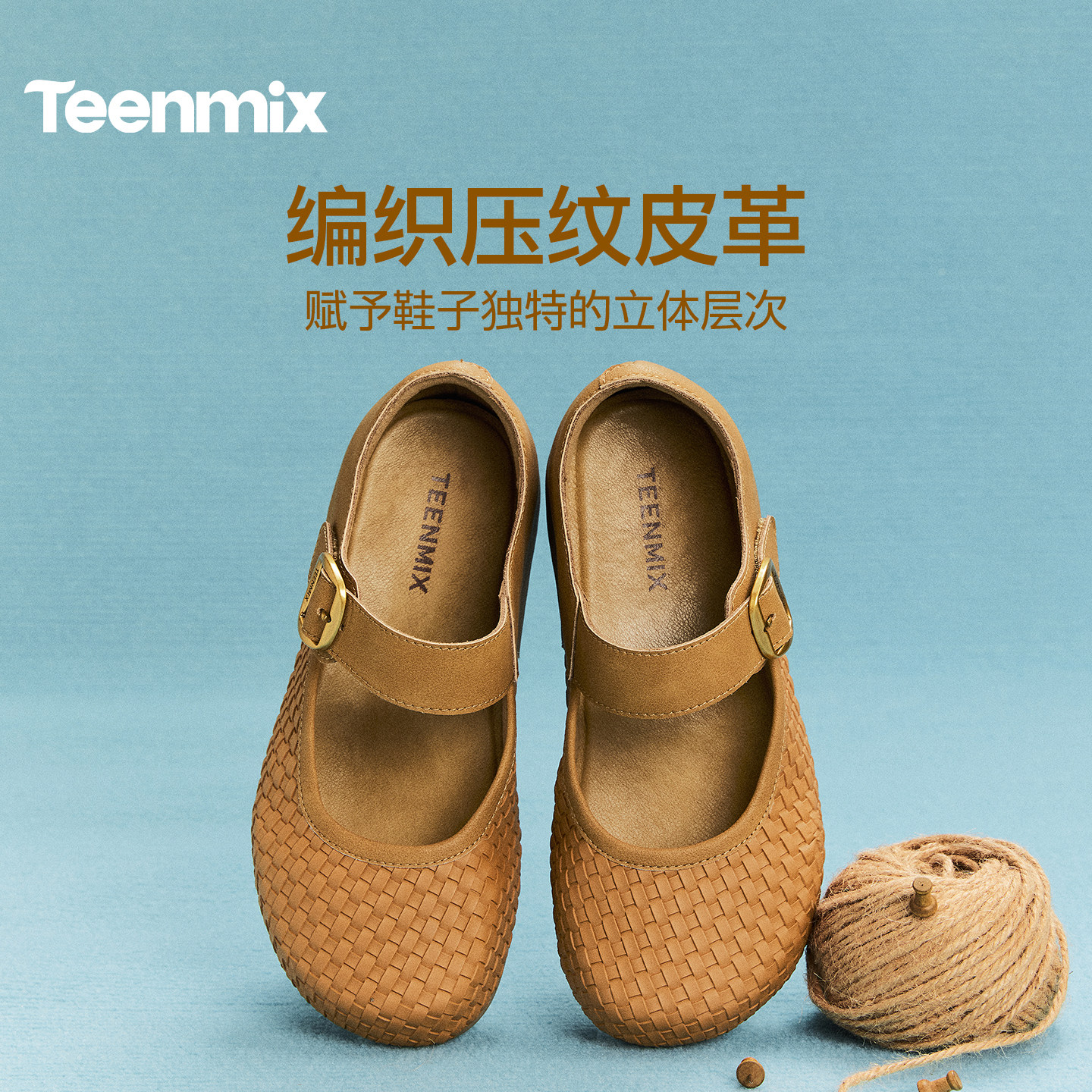 天猫天美意teenmix官方旗舰店,天美意复古编织厚底全包玛丽珍勃肯鞋女软底休闲单鞋2026春季新款,休闲潮流百搭复古
