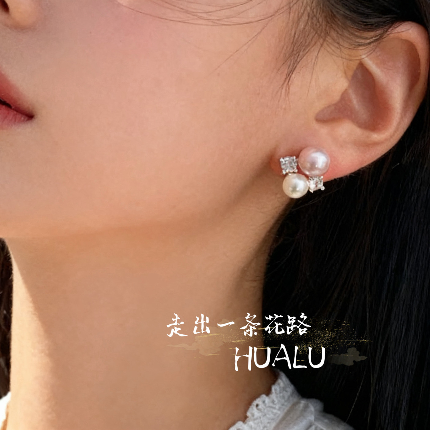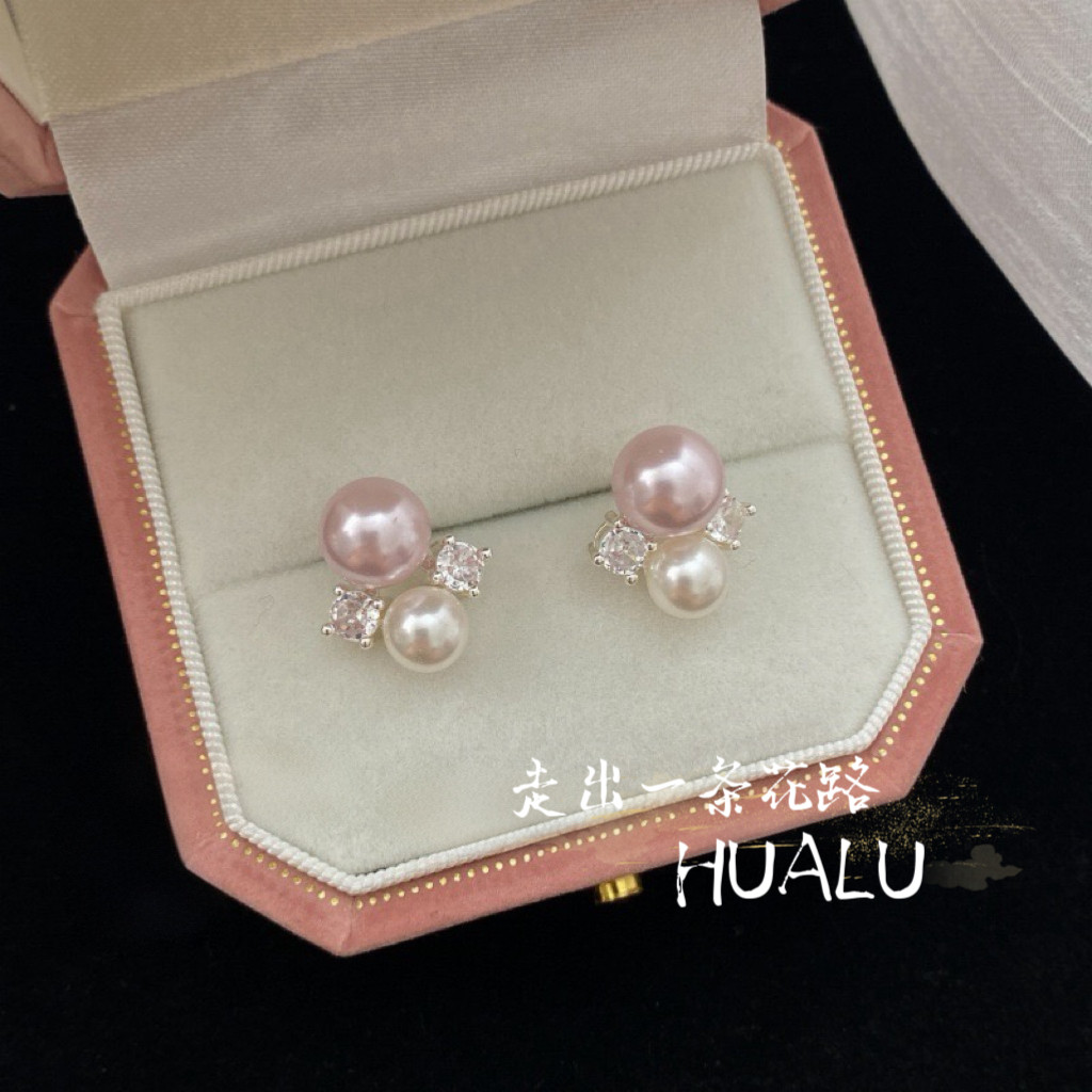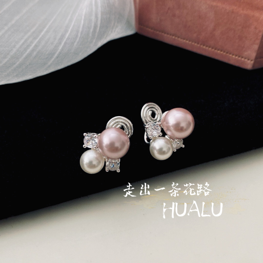 淘宝走出一条花路 HUALU,HUALU-粉桃花~法式温柔珍珠耳饰轻奢高级感小众耳环蚊香盘耳夹女