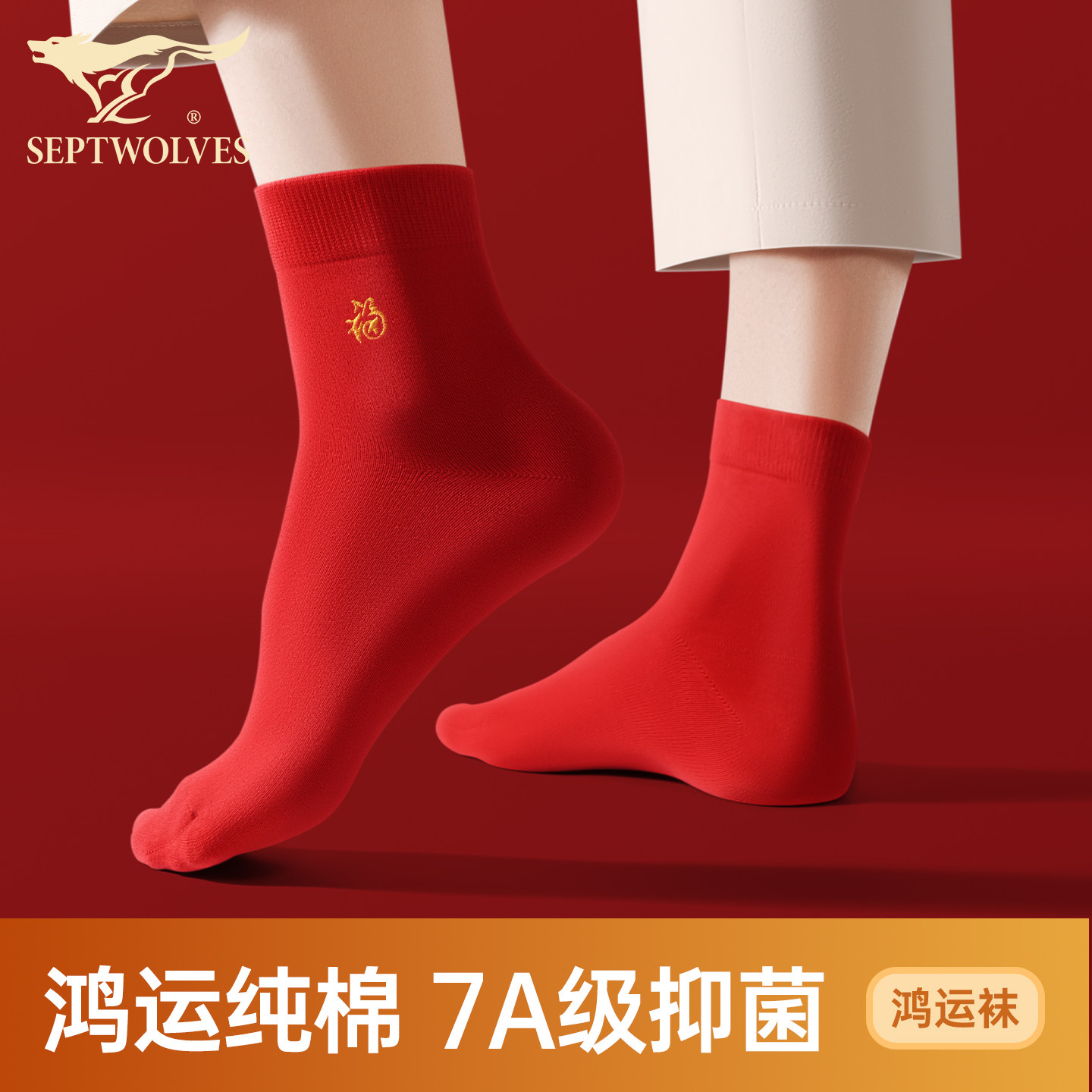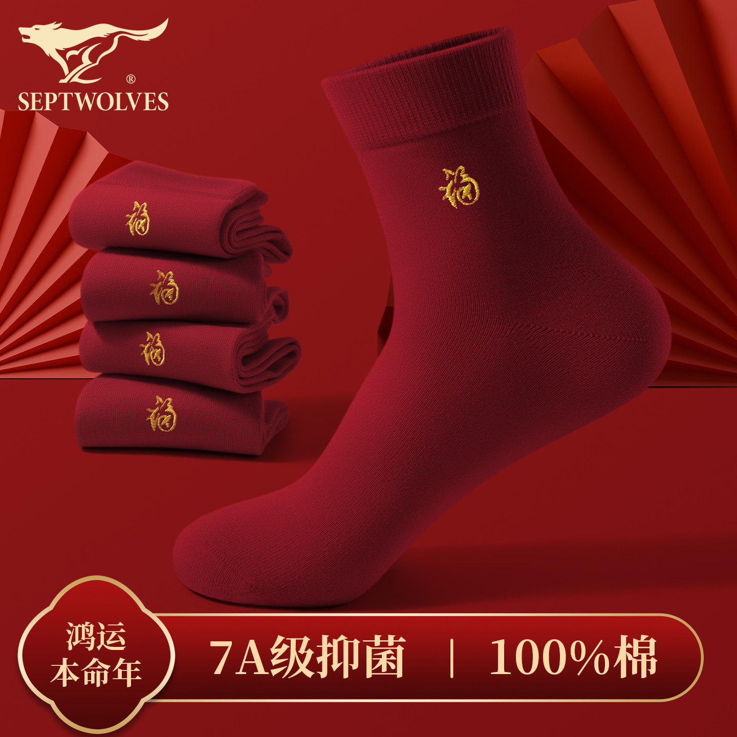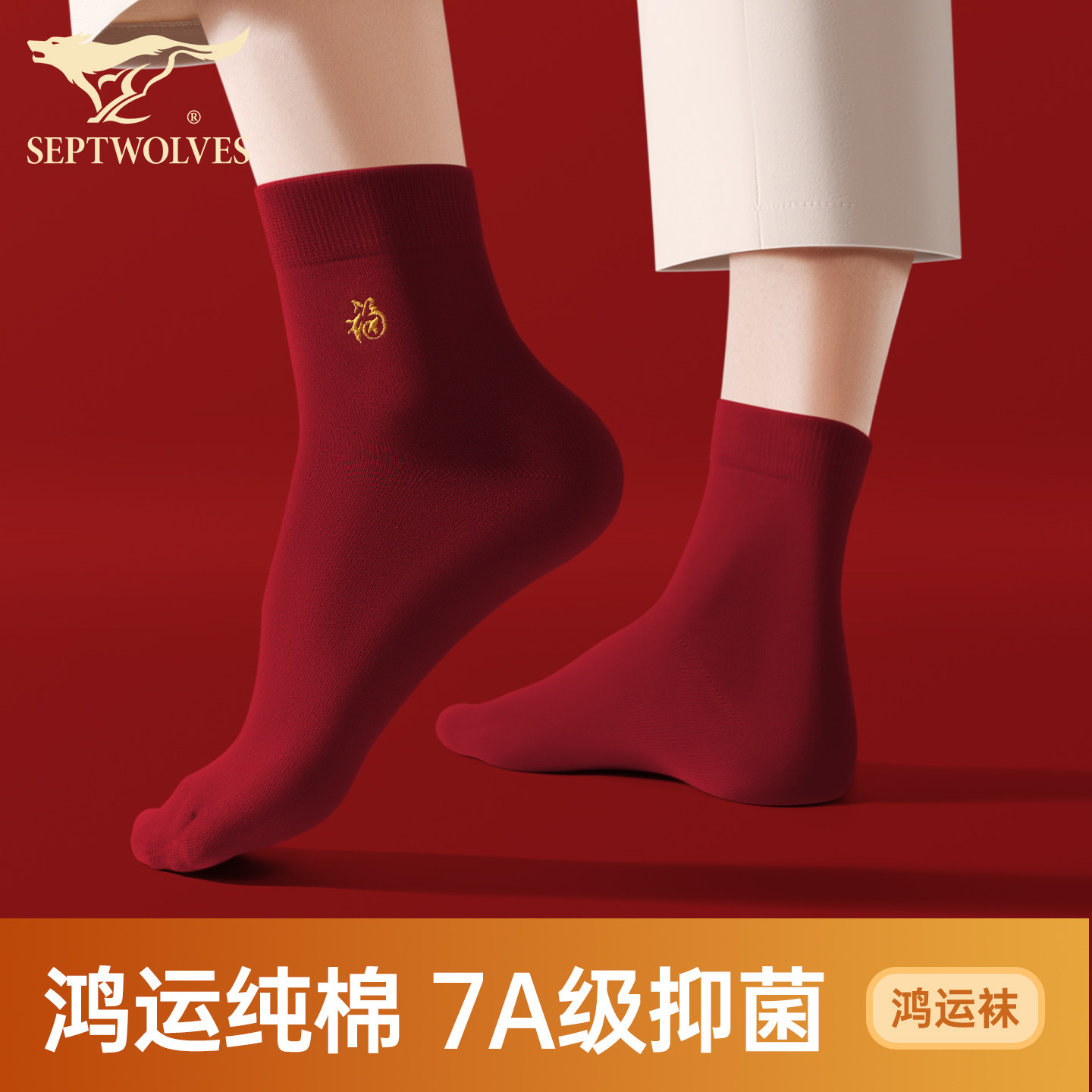 天猫七匹狼伊莎轩专卖店,七匹狼本命年纯棉抗菌中筒红袜子,本命年红色 100%纯棉防臭吸汗 7A抗菌不臭脚