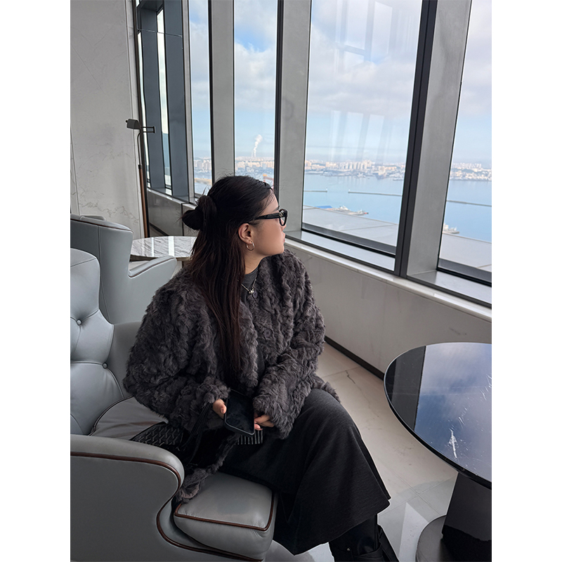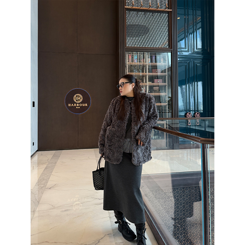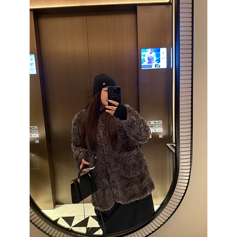 淘宝QBXX STUDIO 铅笔小鑫的店,铅笔小鑫大码女装 慵懒风 皮毛一体环保毛 口袋毛外套