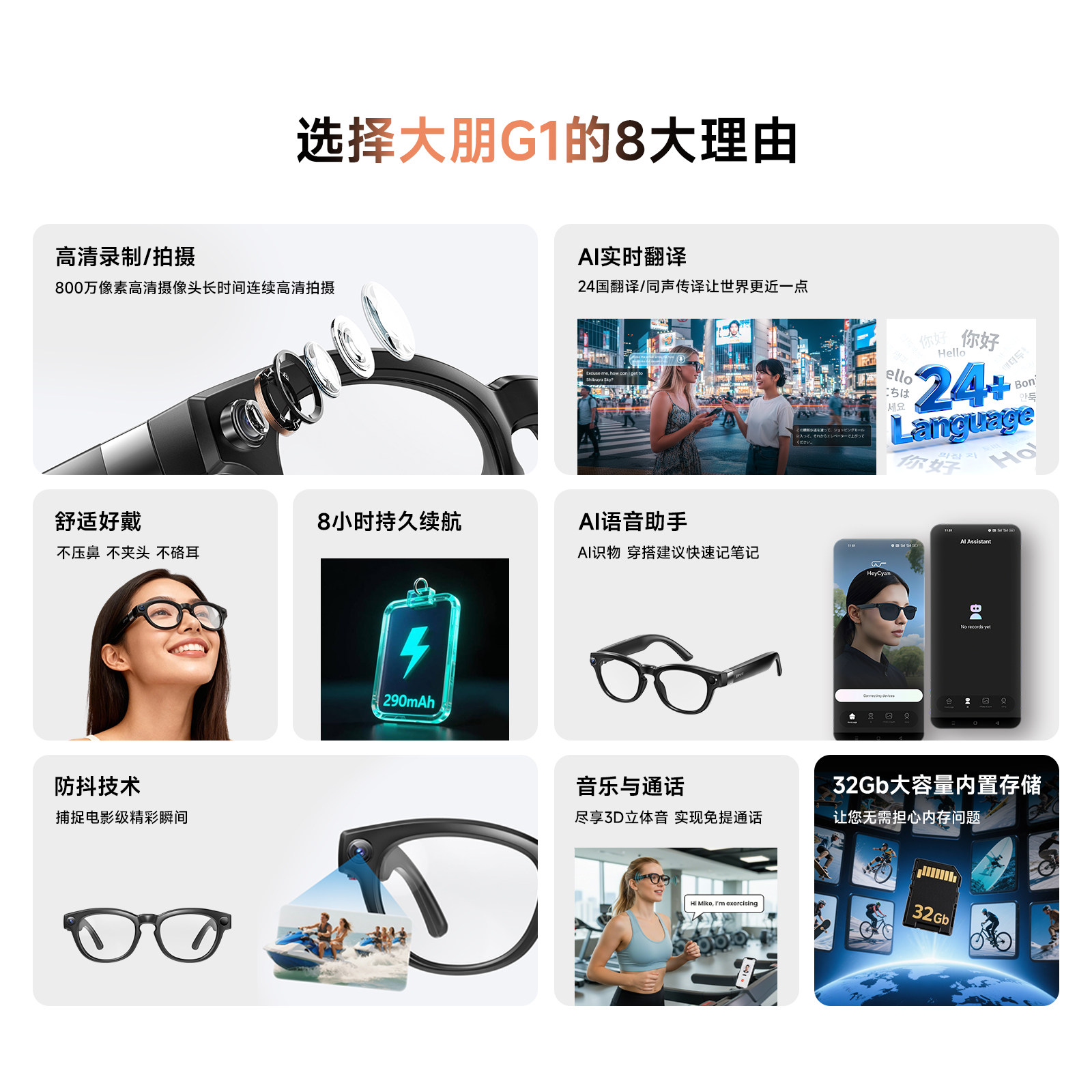 天猫117340031377701947,大朋AI眼镜拍照语音交互