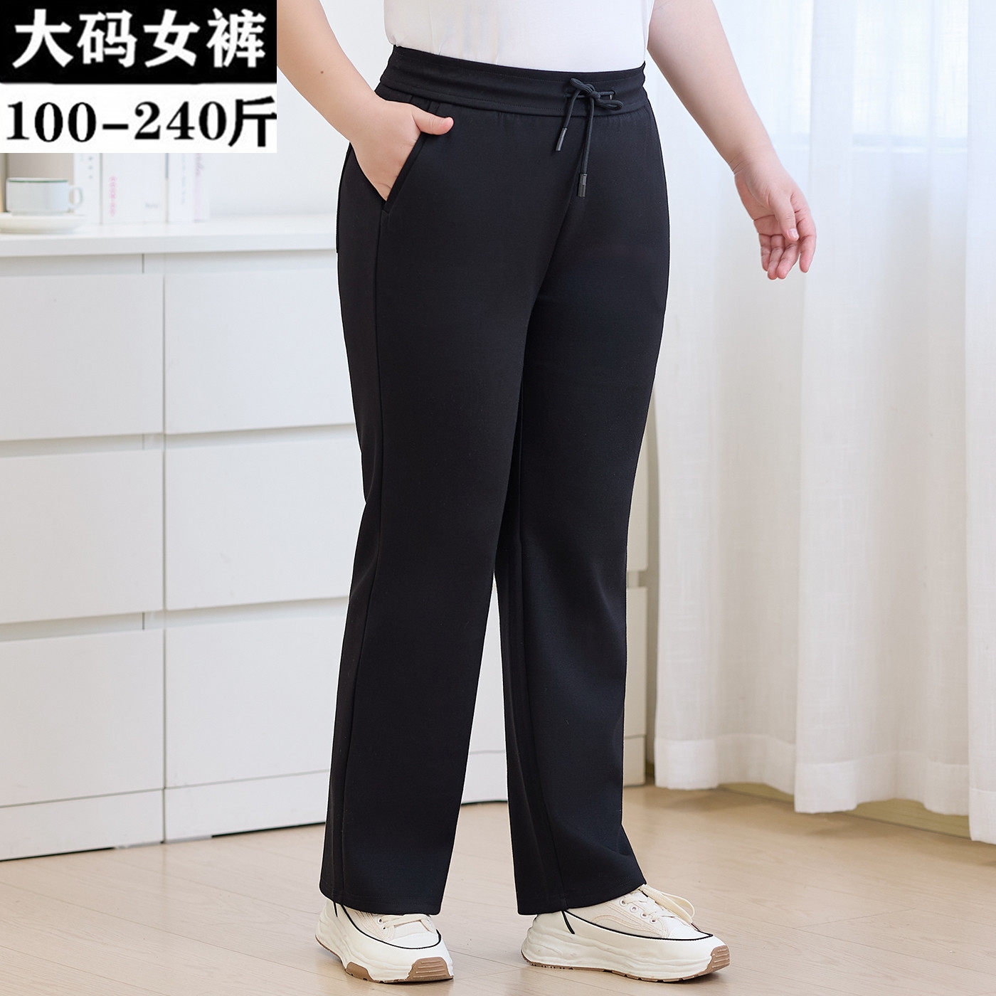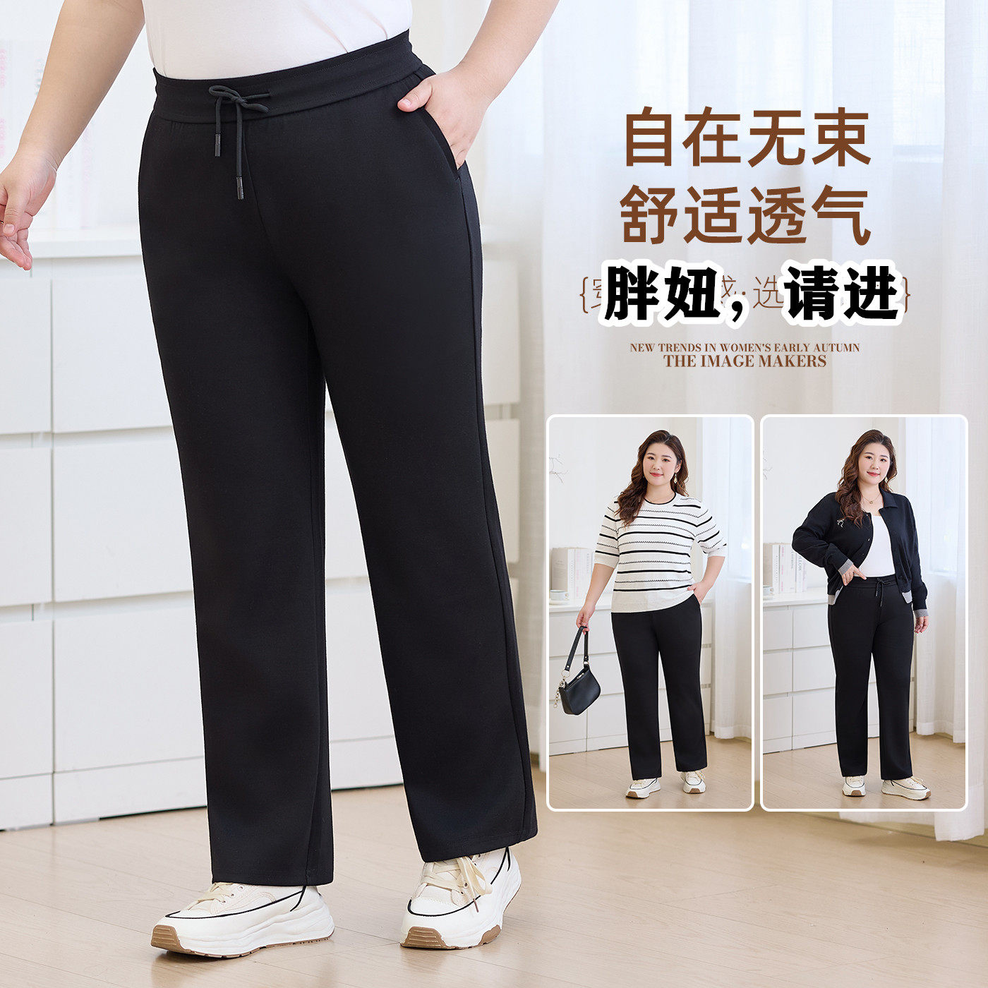 淘宝百依姿大码女装,秋季新款大码系带休闲裤直筒长裤