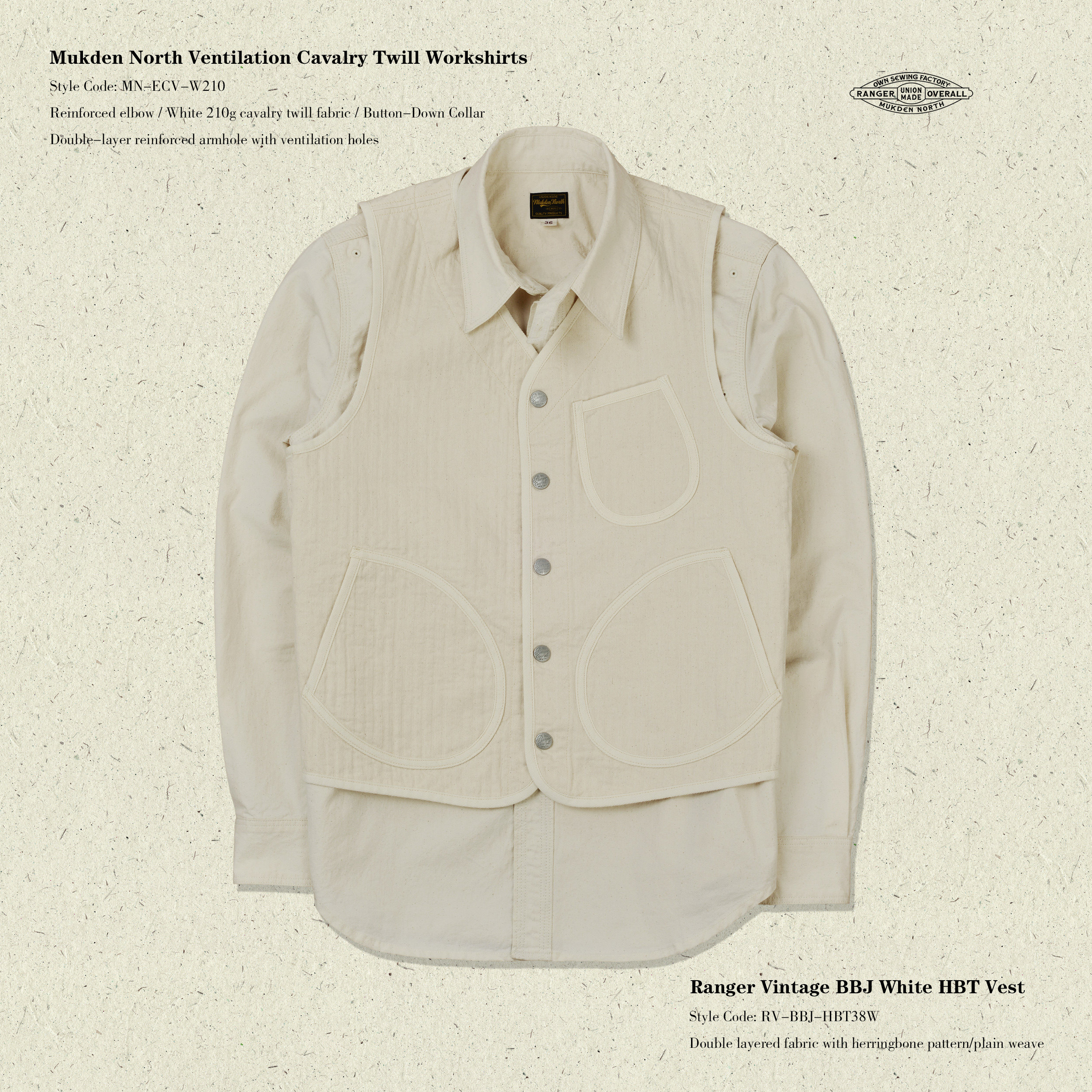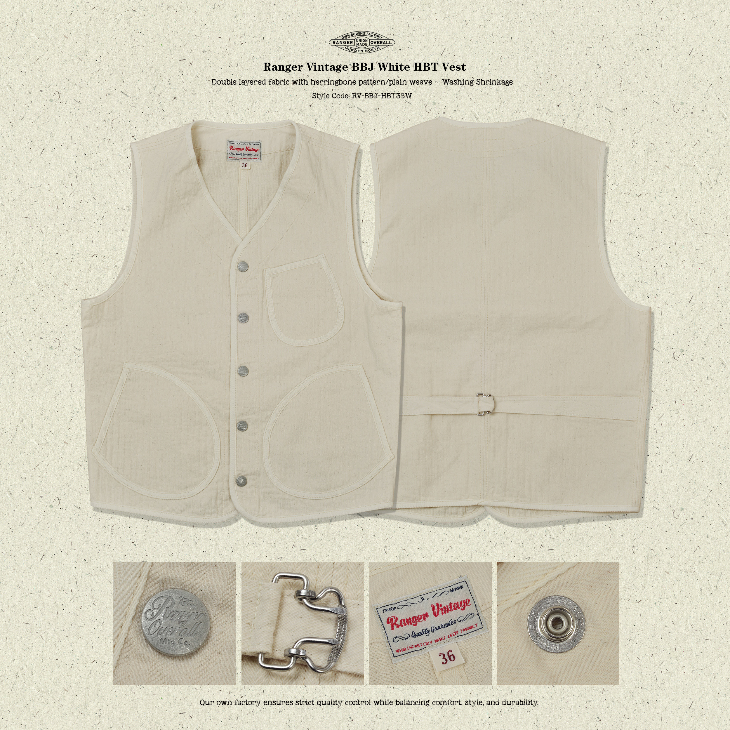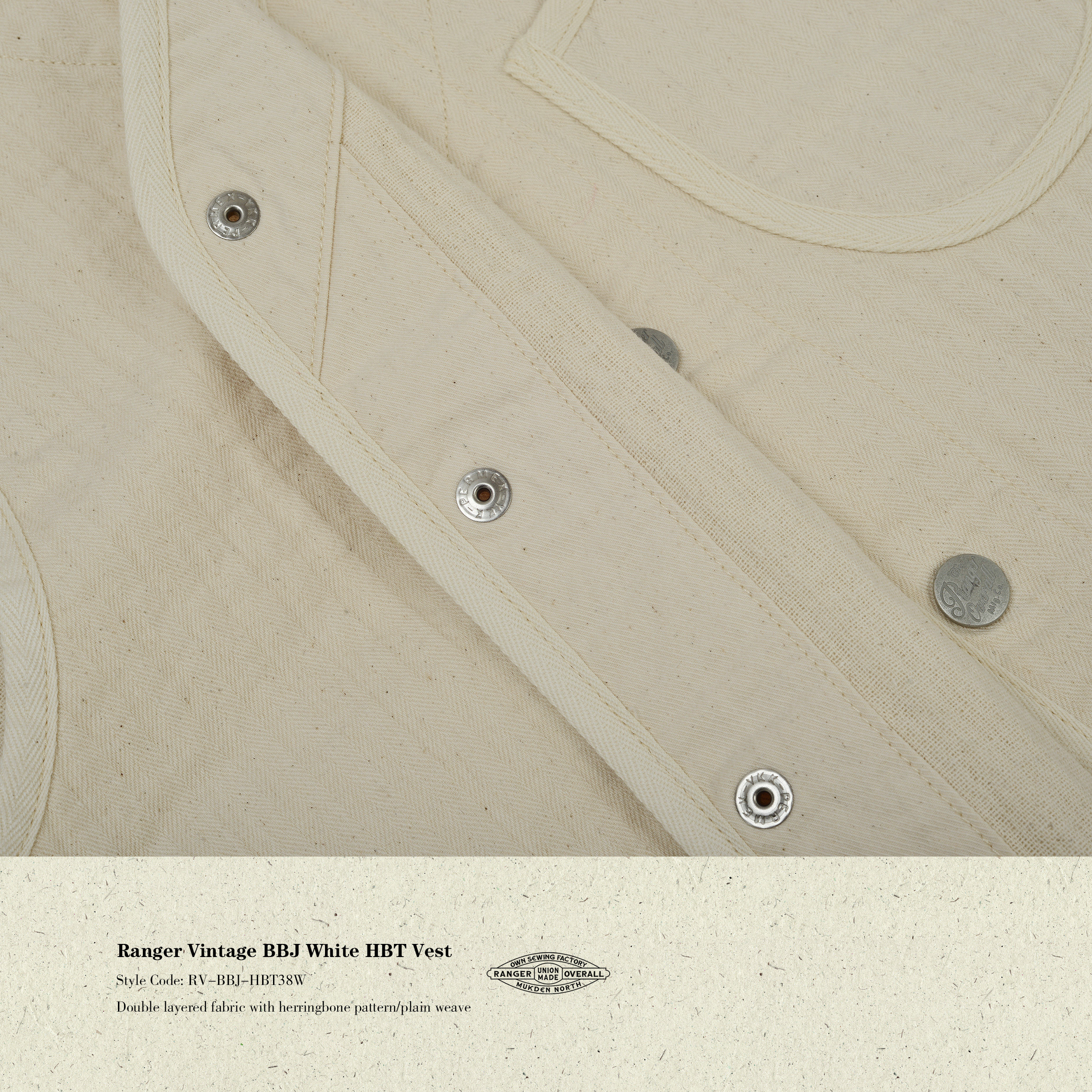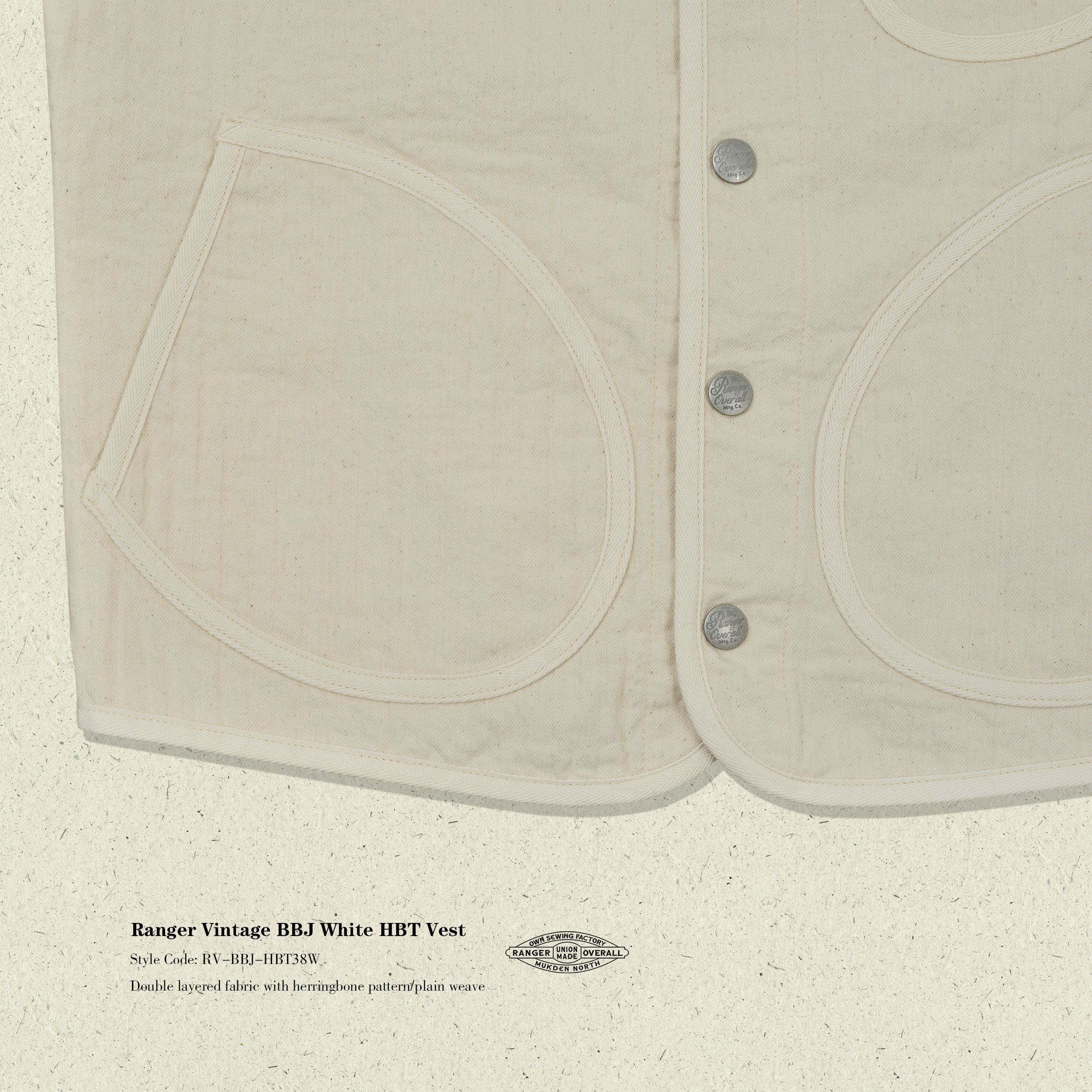 淘宝Ranger Vintage,Ranger Vintage BBJ双层HBT坯布本白色美式复古马甲全棉 背心马夹