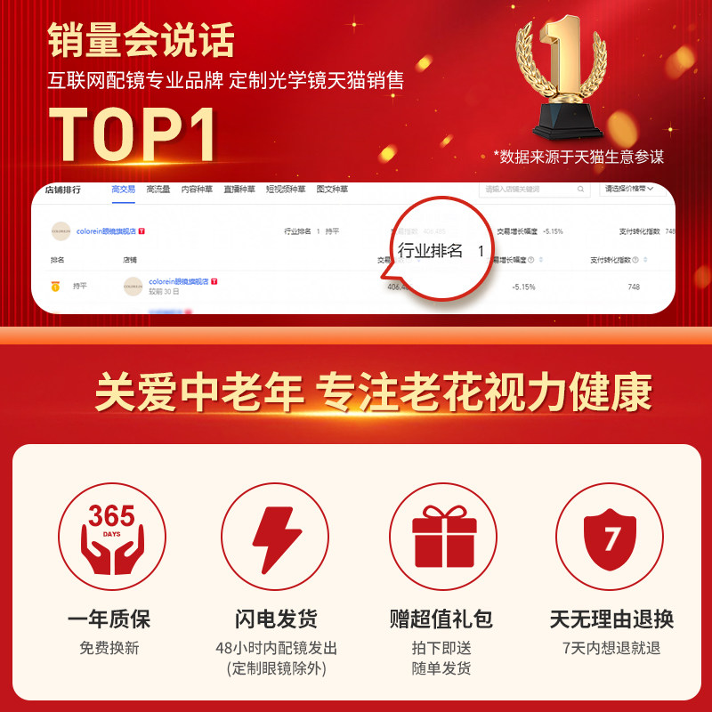 天猫colorein眼镜旗舰店,父亲礼物老花镜男士防蓝光正品,进口镜片 防蓝光老花镜男士