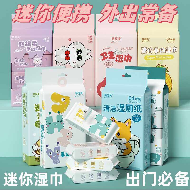 宝宝手口迷你湿巾纸婴幼儿用小包便携式女性擦屁股学生专用