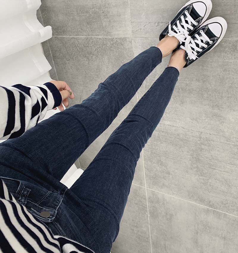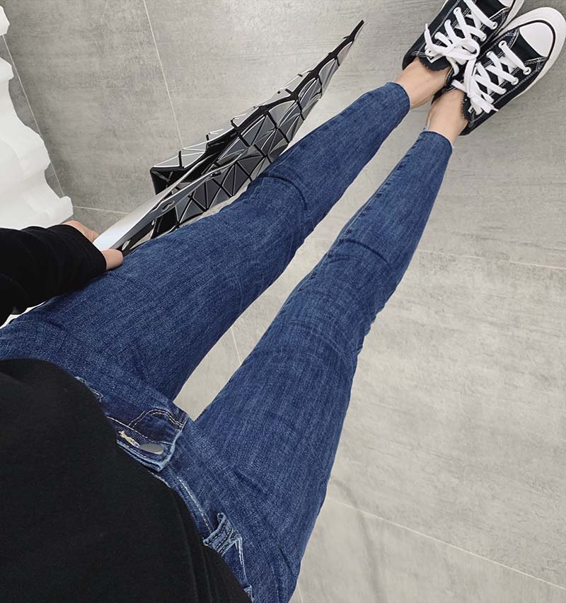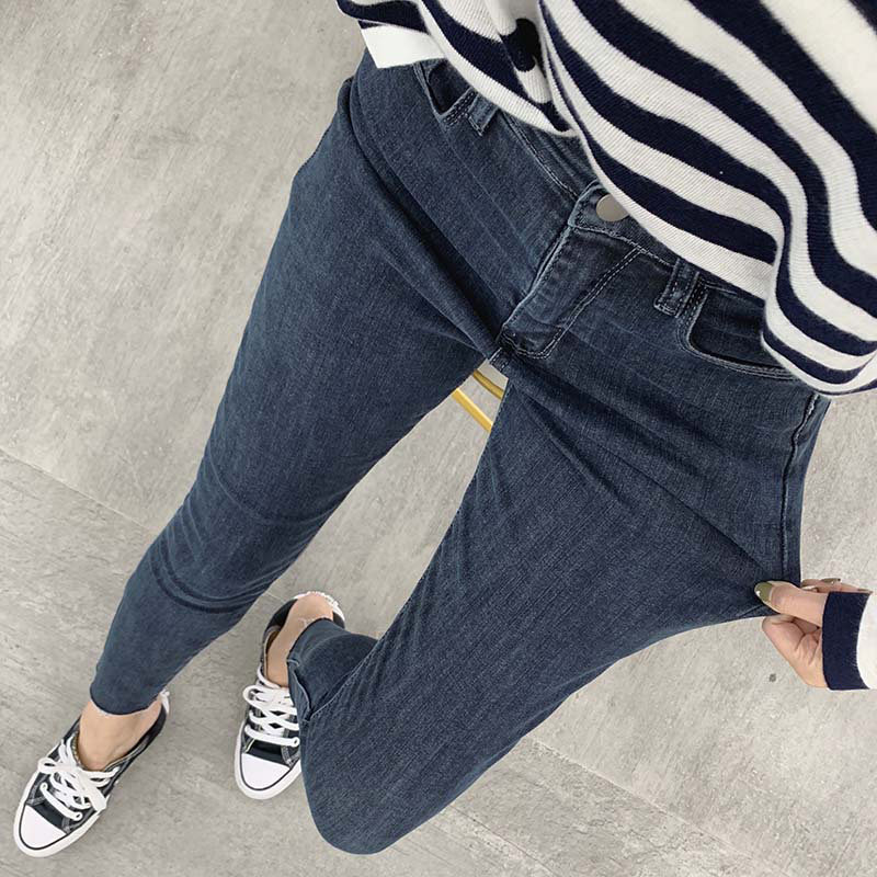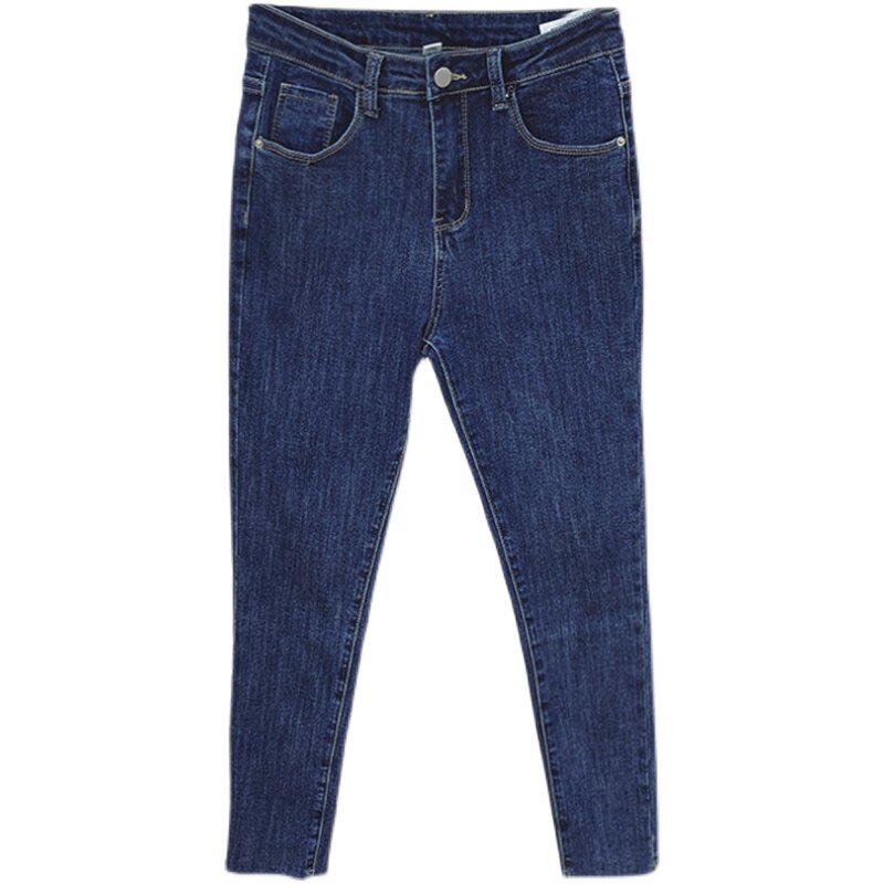 2023春秋新款弹力牛仔裤女大码胖妹妹高腰修身显瘦显高九分小脚裤