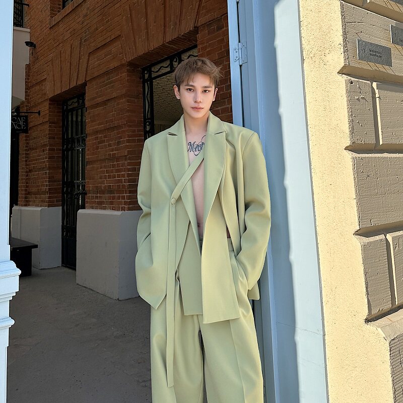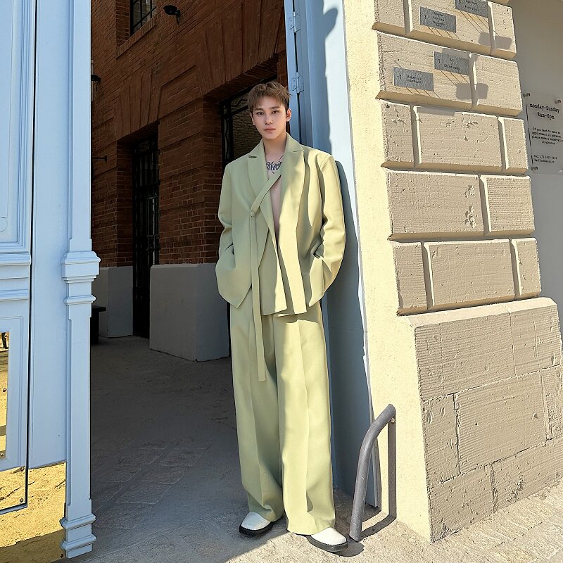 2025春季小众双领绑带西服套装男设计感阔腿西裤高级感网红两件套