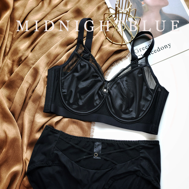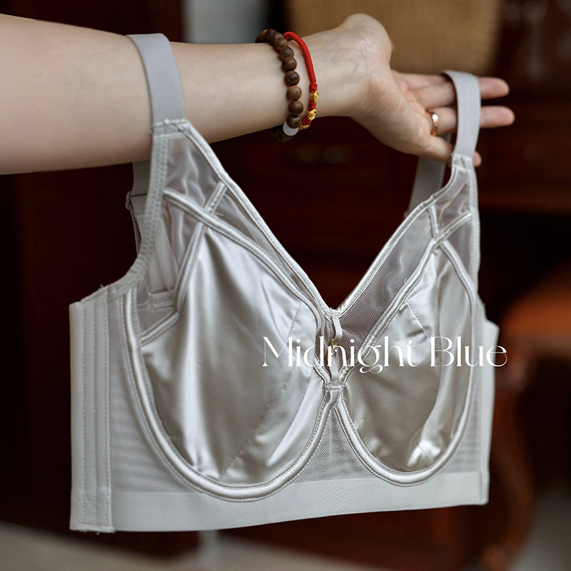淘宝午夜蓝色名品,超薄显瘦奢华绸缎软钢圈性感内衣