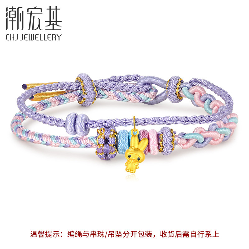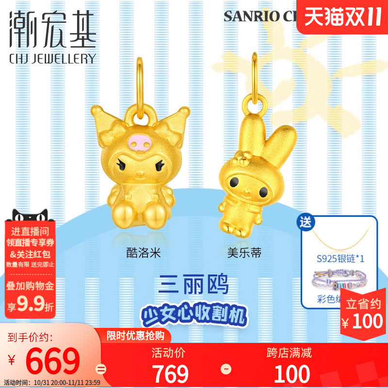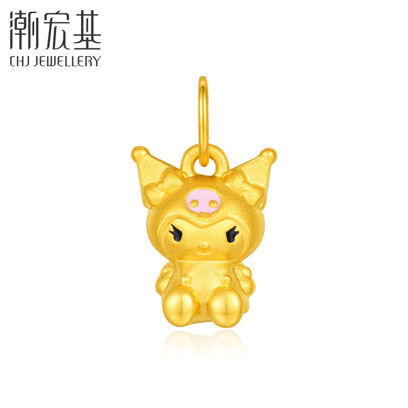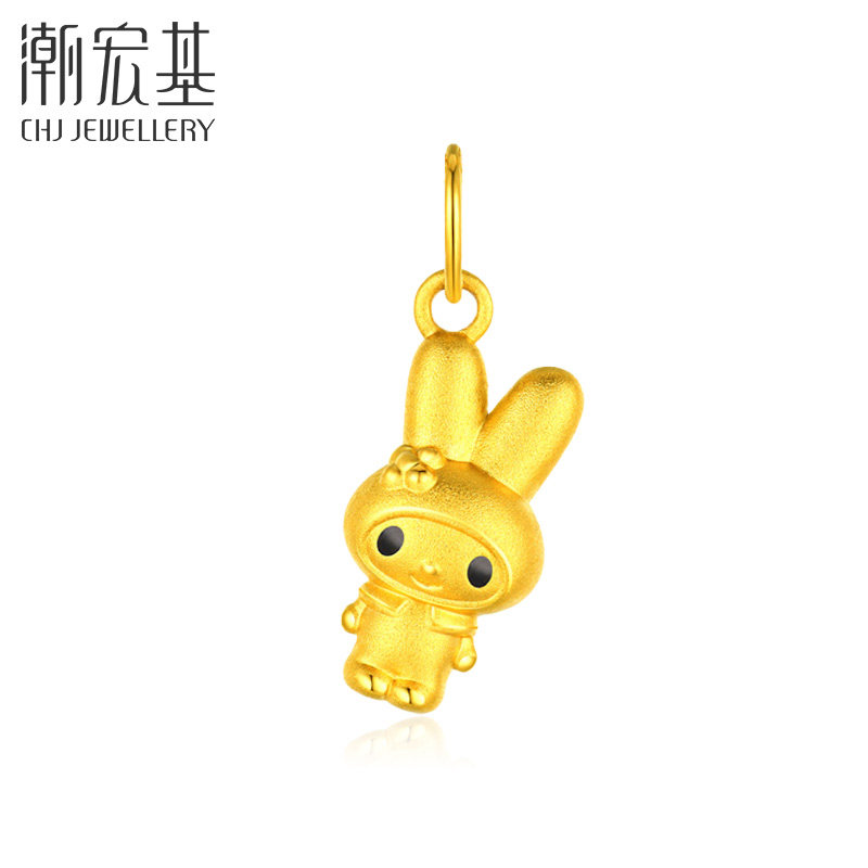 潮宏基三丽鸥黄金吊坠足金挂坠5D硬金美乐蒂酷洛米串珠礼物女小版