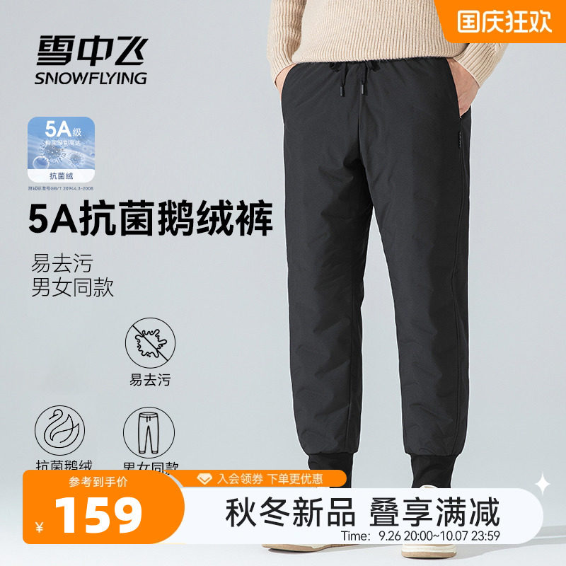 天猫雪中飞官方旗舰店,雪中飞2024冬新款男女同款鹅绒羽绒裤休闲束脚防风保暖御寒舒适