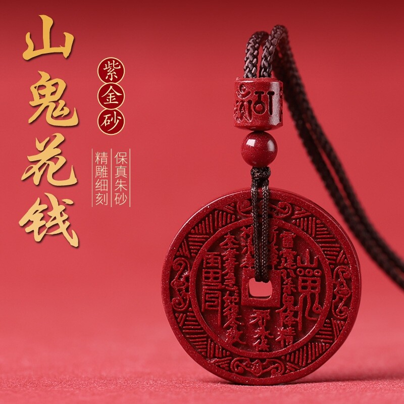 天猫天天特卖工厂店,高品质朱砂山鬼花钱吊坠精品紫金砂汽车钥匙扣平安扣项链五雷挂件,潮流精品,品质保证