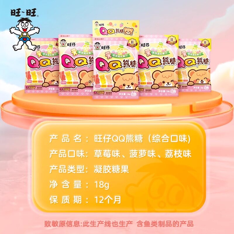 旺旺旺仔qq糖小熊软糖草莓荔枝味凝胶软糖儿童七夕节礼物橡皮糖果
