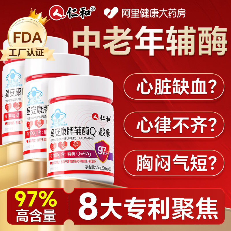 天猫阿里健康大药房,97%黄金含量!高倍护心辅酶q10