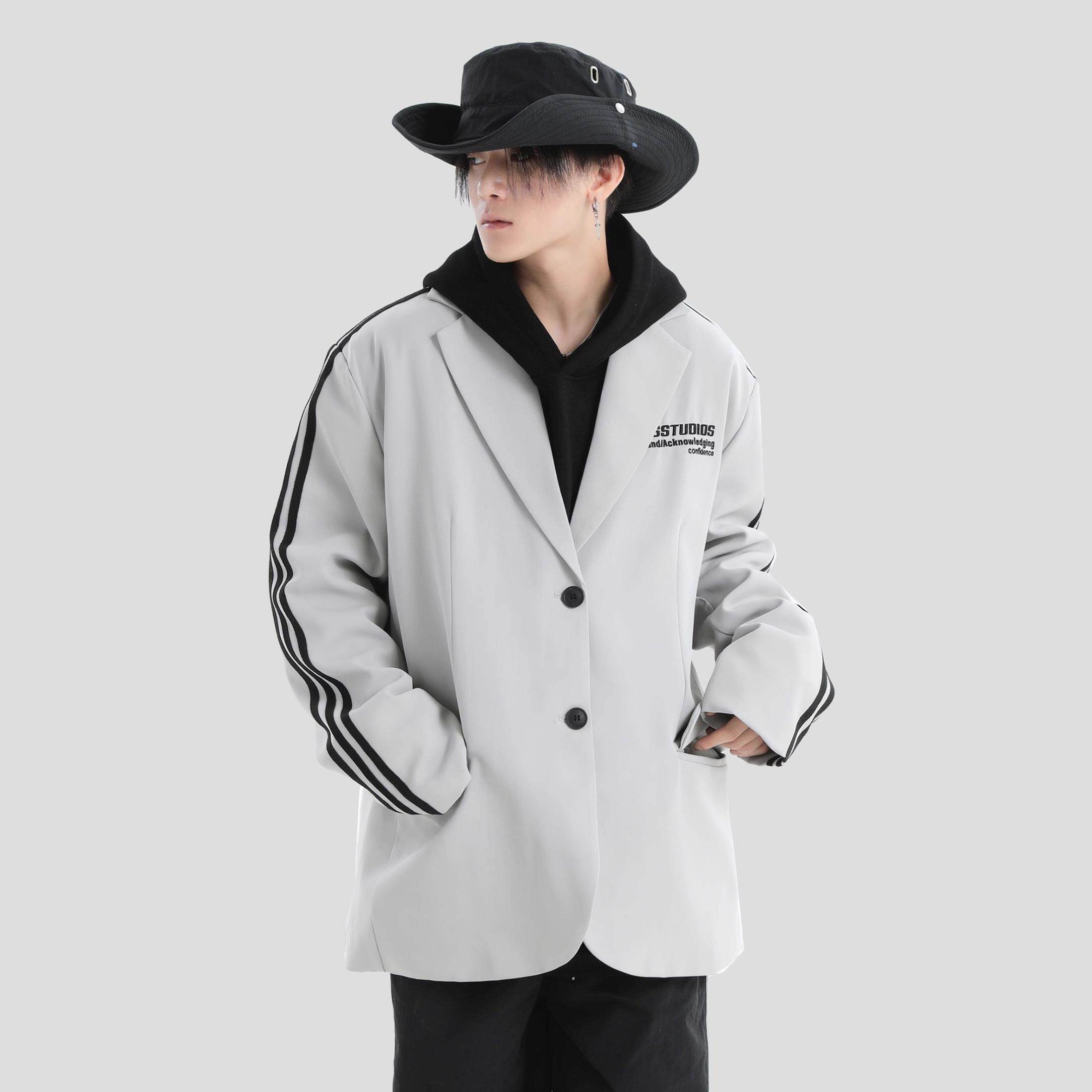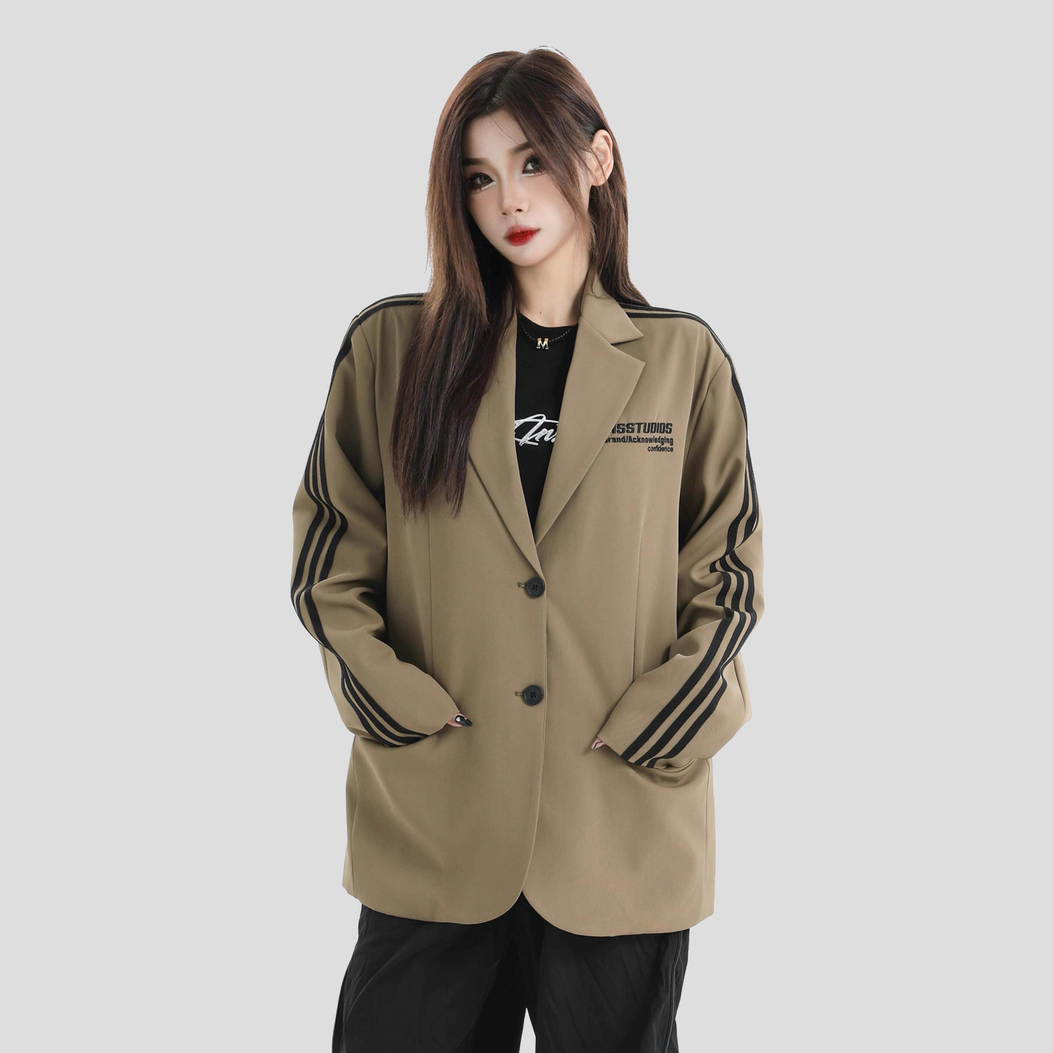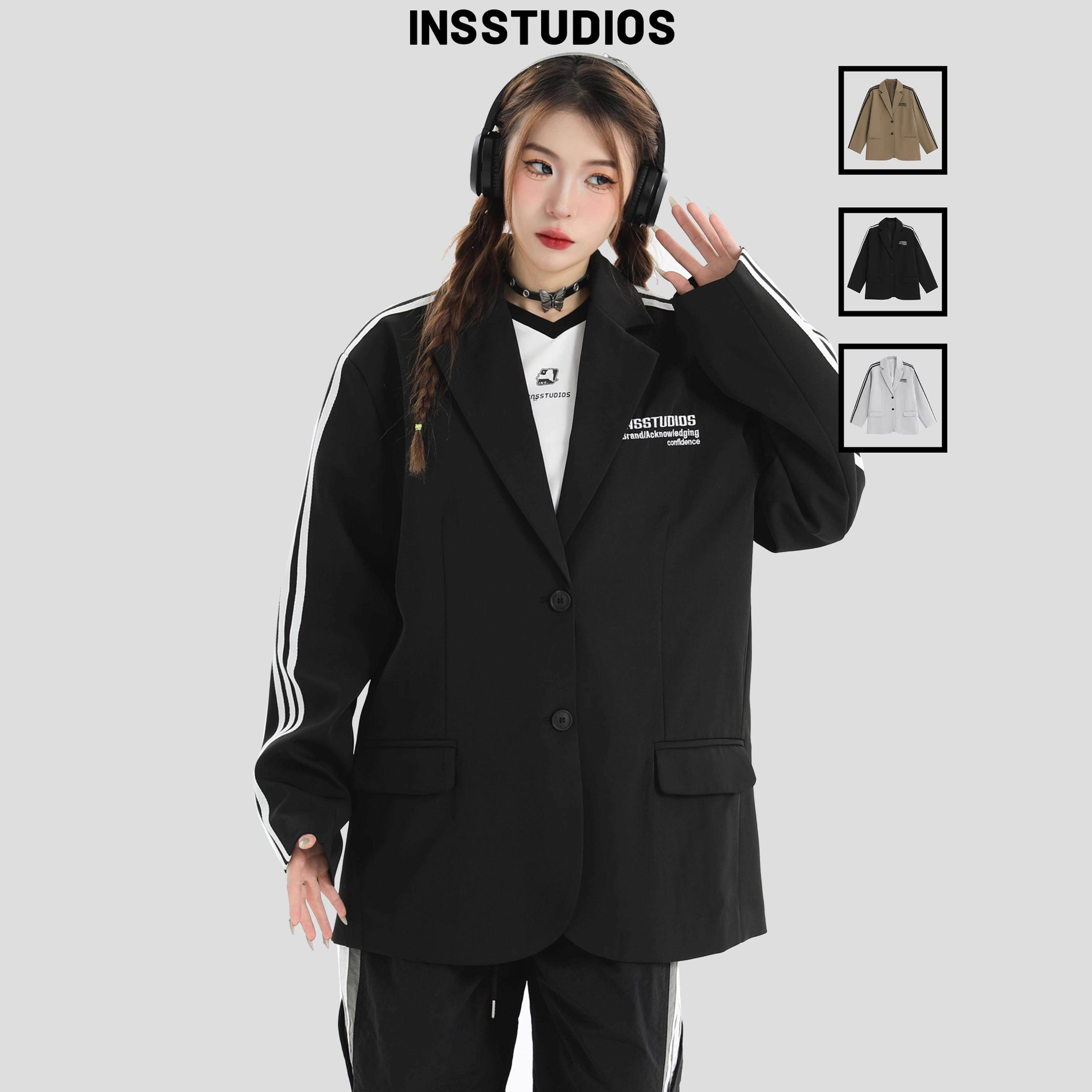 INSstudios 国潮牌情侣美式刺绣LOGO三条杠西服宽松休闲西装外套