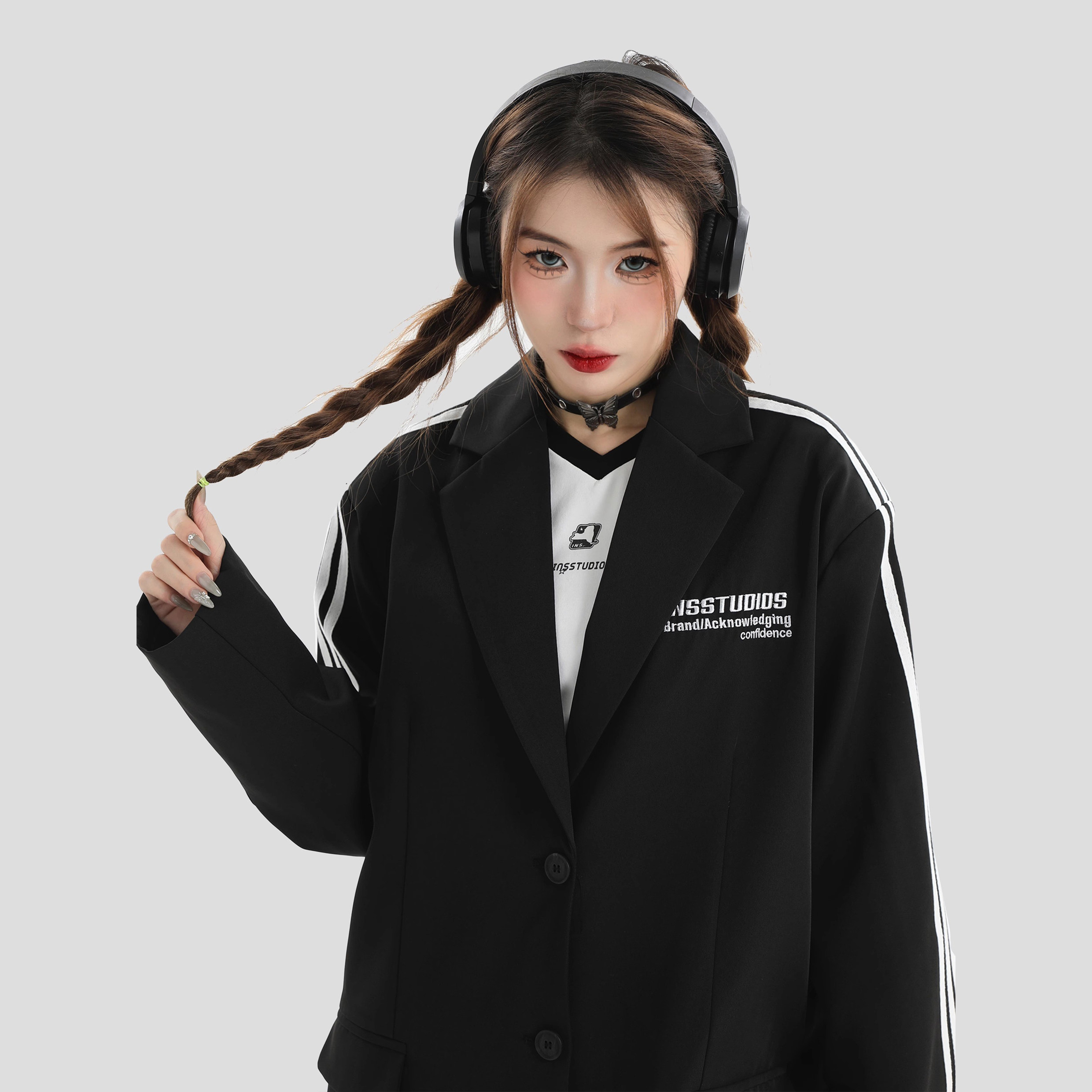 INSstudios刺绣LOGO三条杠西服