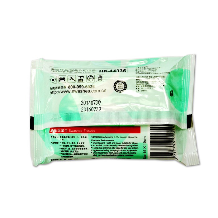 诗乐氏卫生湿巾 便携15片袋装 擦手脸皮肤 不含酒精 正品满30包邮