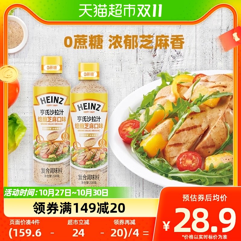 天猫超市,亨氏沙拉汁0蔗糖焙煎芝麻口味蔬菜水果沙拉健身餐火锅蘸料200g*2