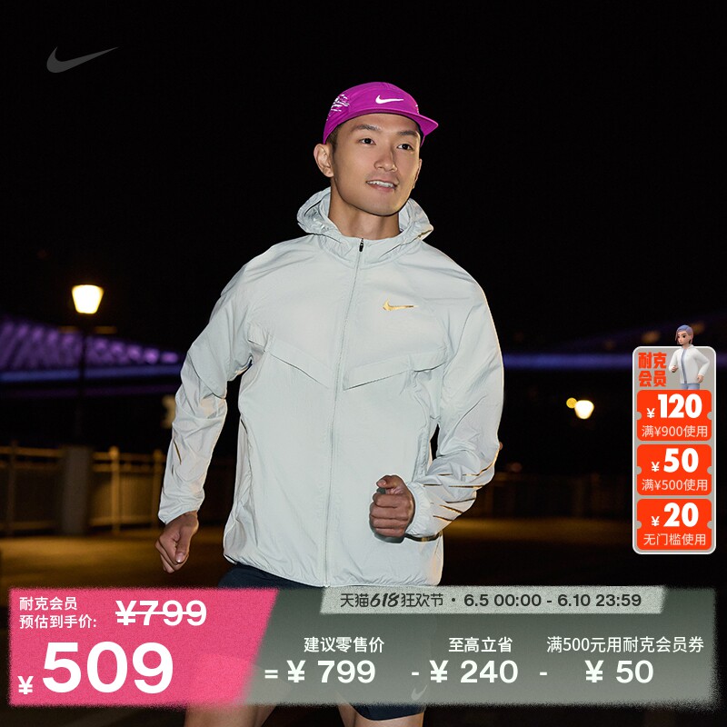 天猫NIKE官方旗舰店,Nike耐克拒水男子跑步夹克防晒衣,有效拒水 抵御紫外线