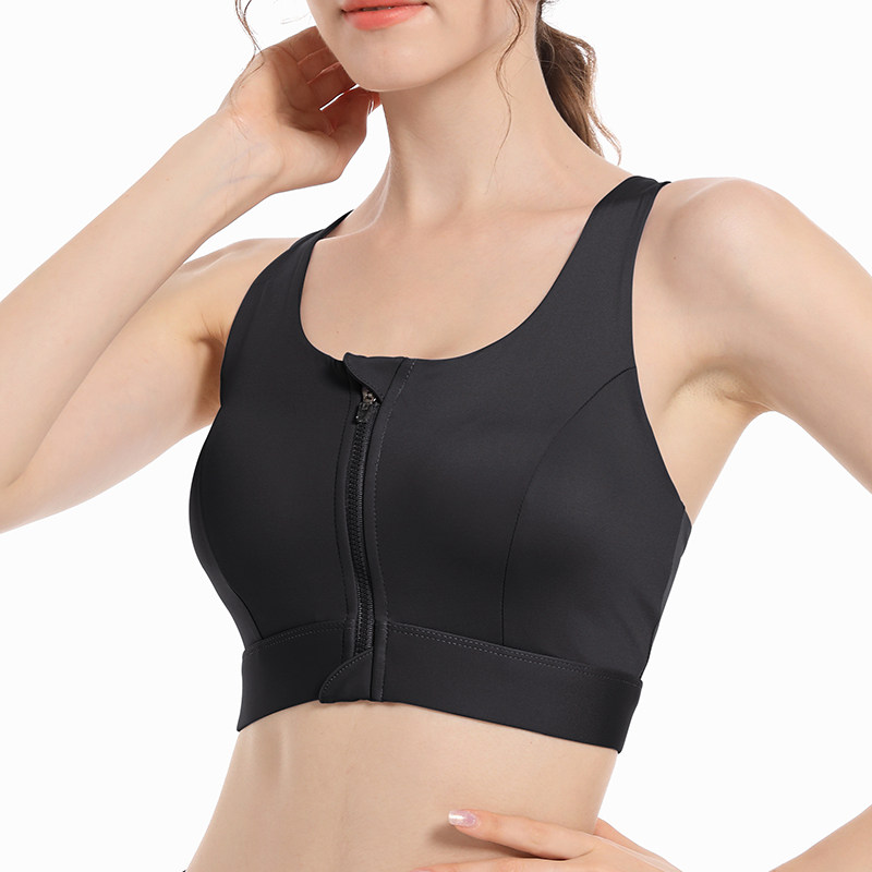 固定杯运动内衣女高强度防震瑜伽背心健身跑步聚拢前拉链运动文胸