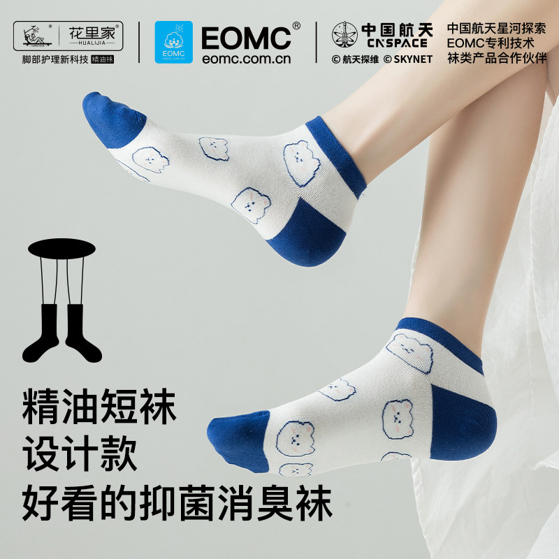 花里家女款短袜春夏吸汗透气可爱纯棉袜子ins风抗菌防臭精油袜