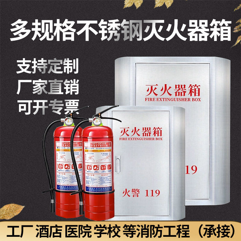 淘宝旬安消防器材,304不锈钢圆角灭火器箱4/5公斤干粉加厚圆弧学校商场消防放置箱