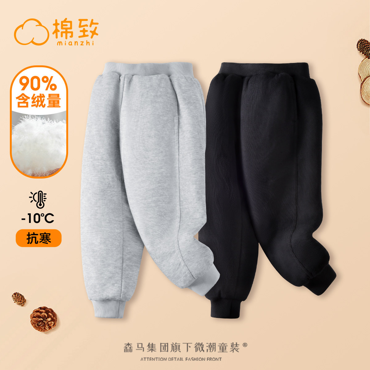 棉致儿童羽绒裤童装秋冬款2023新款女童裤子鸭绒外穿男童冬装长裤