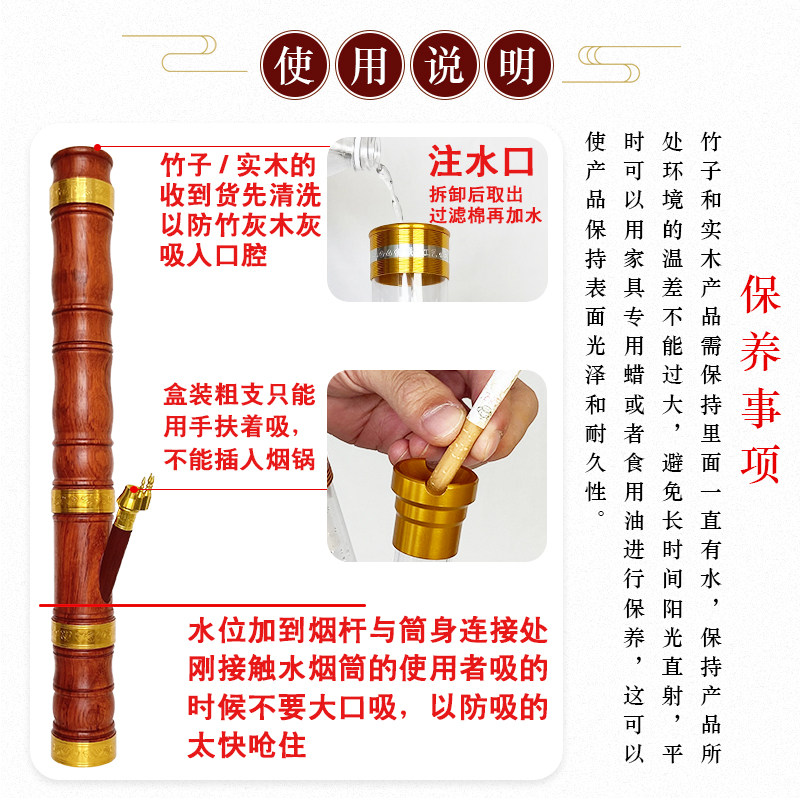 淘宝云南瑞众烟筒,高档红花梨木大号雕龙水烟筒