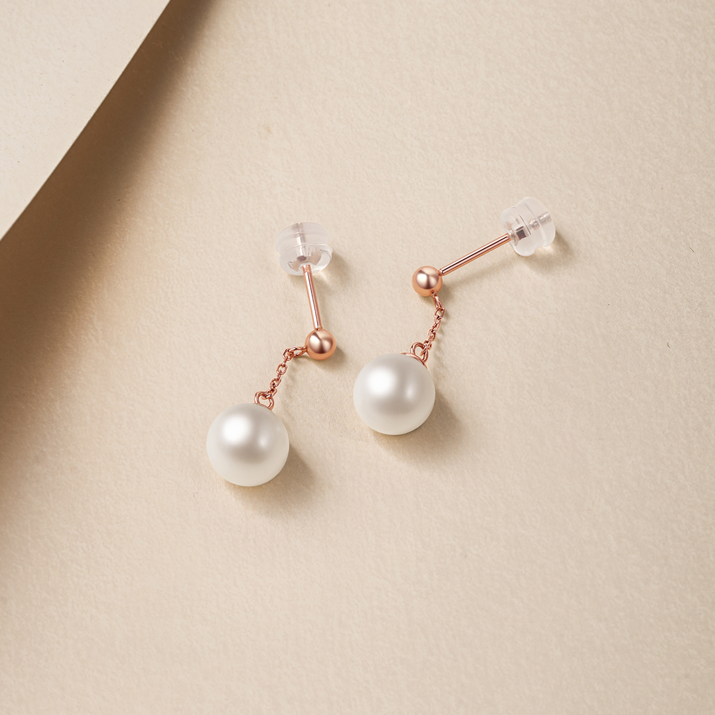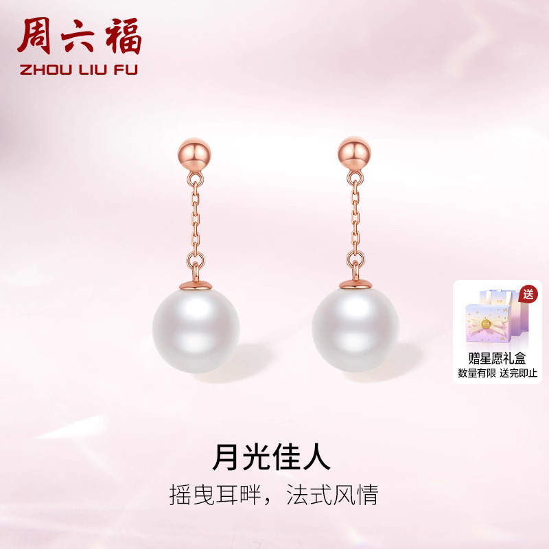 天猫周六福旗舰店,周六福18K金珍珠耳钉女淡水珍珠耳线短款优雅耳饰7.5mm圣诞礼物