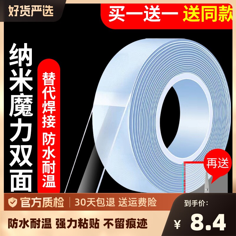 纳米双面胶高粘度不留痕透明强力固定墙面汽车专用防水超强3m亚克力网格两面胶布万能防滑贴无痕魔力贴片胶带
