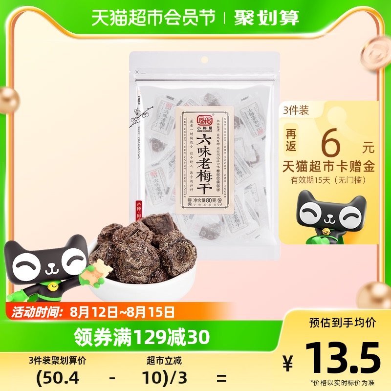 天猫超市,小梅屋六味老80g*1袋话梅梅子,【经典六味老梅干 低温盐渍 自然发酵 】