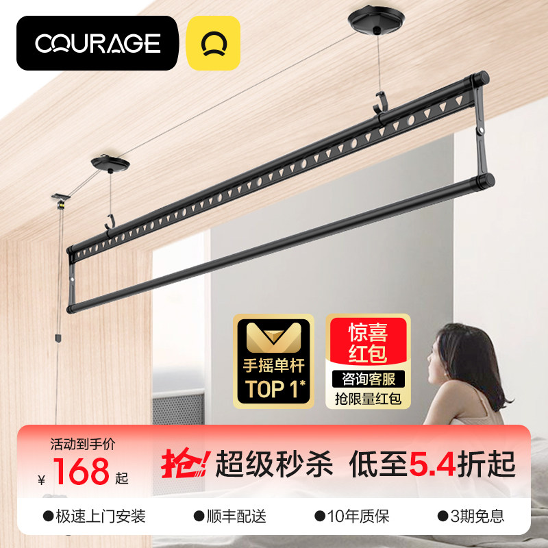 天猫courage旗舰店,单杆TOP1晾衣架政府补贴75折,顺丰配送 上门安装 全国包安装 质保10年