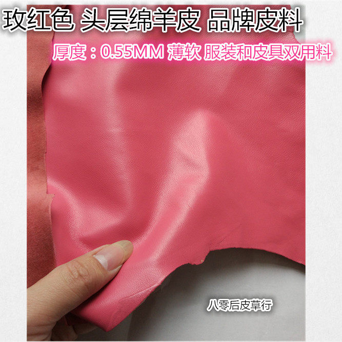 淘宝八零后皮草行,玫红色头层绵羊皮diy手工皮具包包,0.5MM厚度玫红色头层绵羊皮